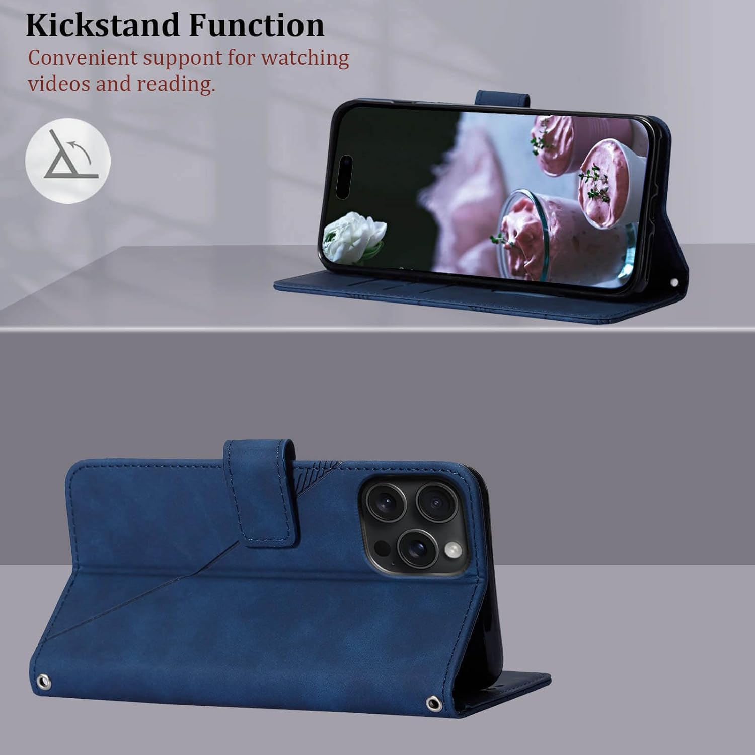 [Kickstand-Function]: For iPhone 15 Pro Max Flip Cases Adjustable Viewing Angles,Can be converted easily into a stand,freely and relaxed to enjoy video, movies, Face Time, E-book, Pictures, etc (Will be Like this for iPhone 15 Pro Max wallet case, especially the designed patterns).It is a perfect gift for women, men, girl, boy, family and friend.
