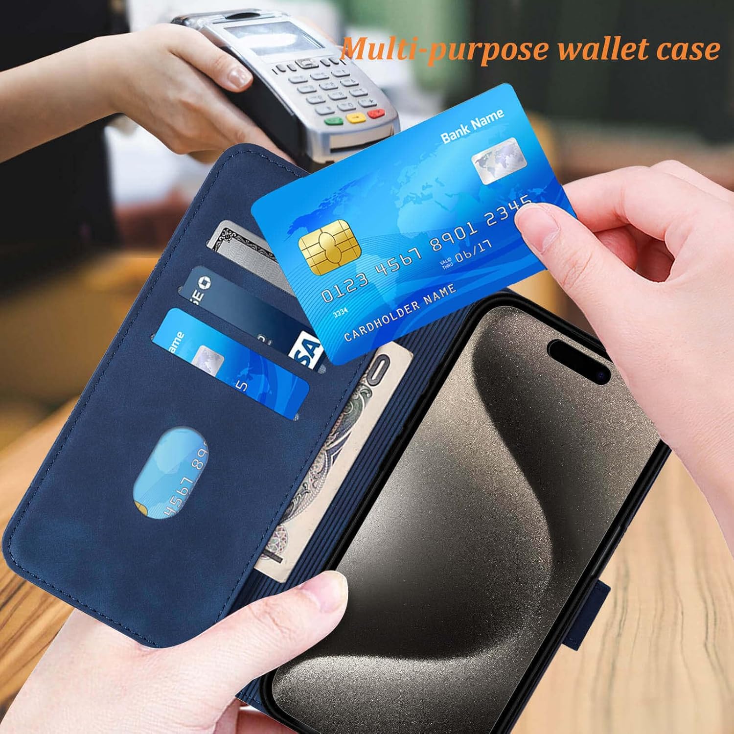 15 Pro Max Phone Wallet Case Built-in 3 card slots & inner pocket are designed for your convenience. You can take your phone along with basic cards and cash without carrying wallet.This Magnetic is strong enough to keep the wallet tightly closed. You don’t have to worry about your belongings safely.Detachable wrist strap – A small wrist strap is very convenient when you have no more hands to carry your phone.You can remove the wristband when you don’t need it for its detachable designed.Carry around all your need without having to take your wallet with you.