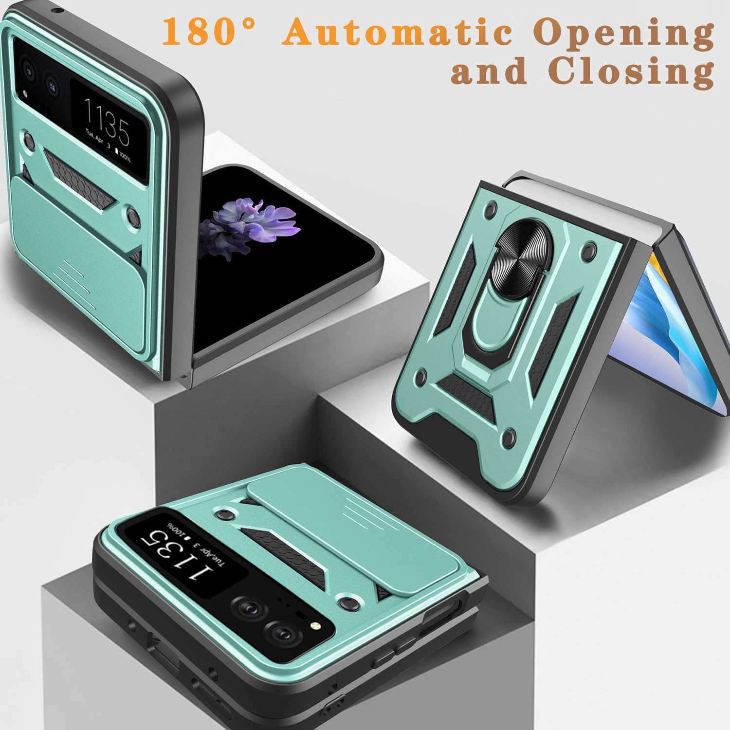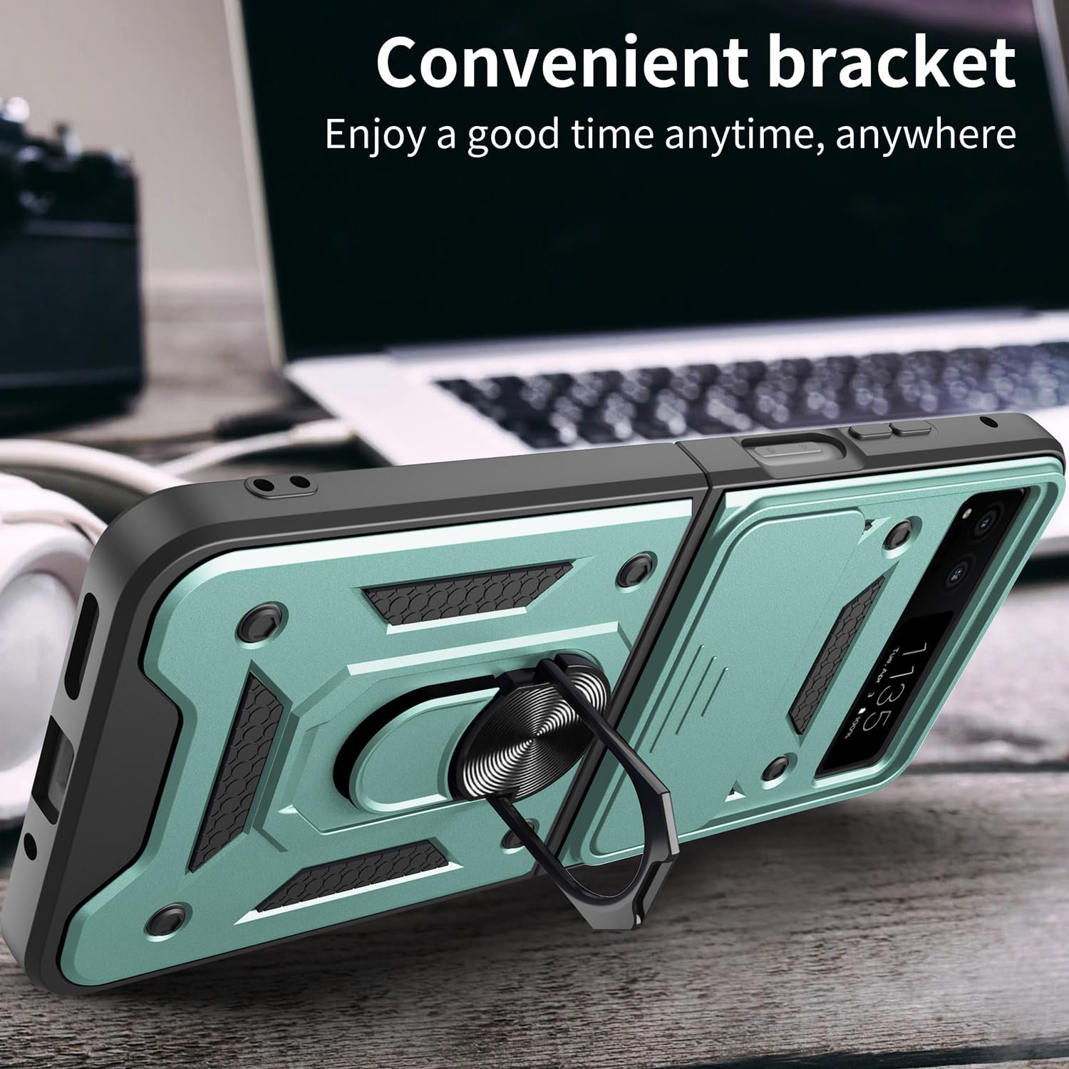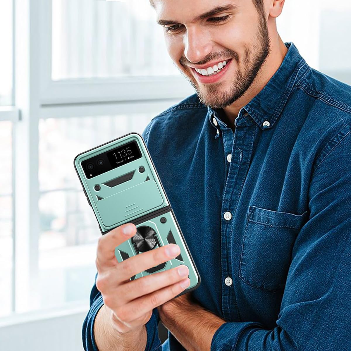 for Motorola Razr 2023 Case with Camera Cover & Kickstand, Slide Lens Protection + 360° Rotate Ring Stand, Impact-Resistant, Shockproof, Protective Bumper,Cases for Moto Razr 2023(Dark Green)