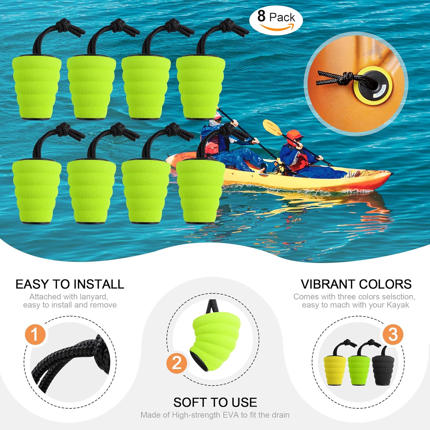 GanFindX 4, 6 or 8 Pack | 3 Colors | Form-Fitting Kayak Scupper Plug Kit, Fit 1.4-1.7″ scuppers, High Elasticity Fits Most Drain Holes & EVA Meterial
