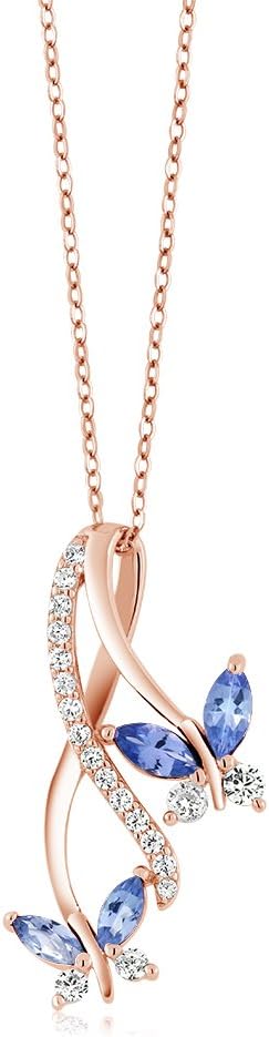 Gem Stone King 925 Sterling Silver Blue Tanzanite Necklace | Butterfly Infinity Pendant Necklace for Women | 1.21 Cttw | December Gemstone Birthstone | with 18 Inch Silver Chain