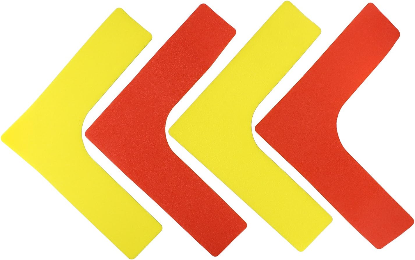 NO SLIP SILICONE DESIGN: Constructed from a heavy-duty rubber lined with a smooth silicone backing, these agility markers act as glue to any gym floor or basketball court, but unlike adhesive stickers or pickleball court tape, these markers are reusable and leave your floor clean without scuffs or residue; These flexible volleyball court lines and corners come in an even mix of yellow and red, and work great indoors and outdoors, particularly on polished surfaces