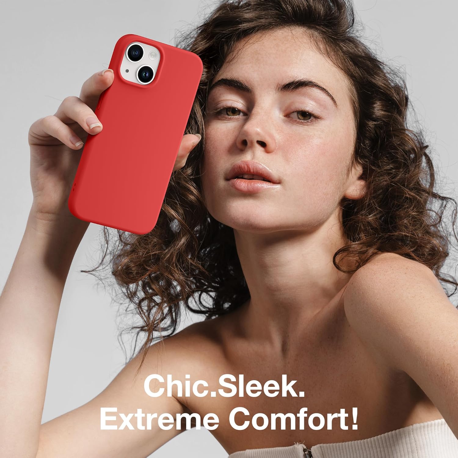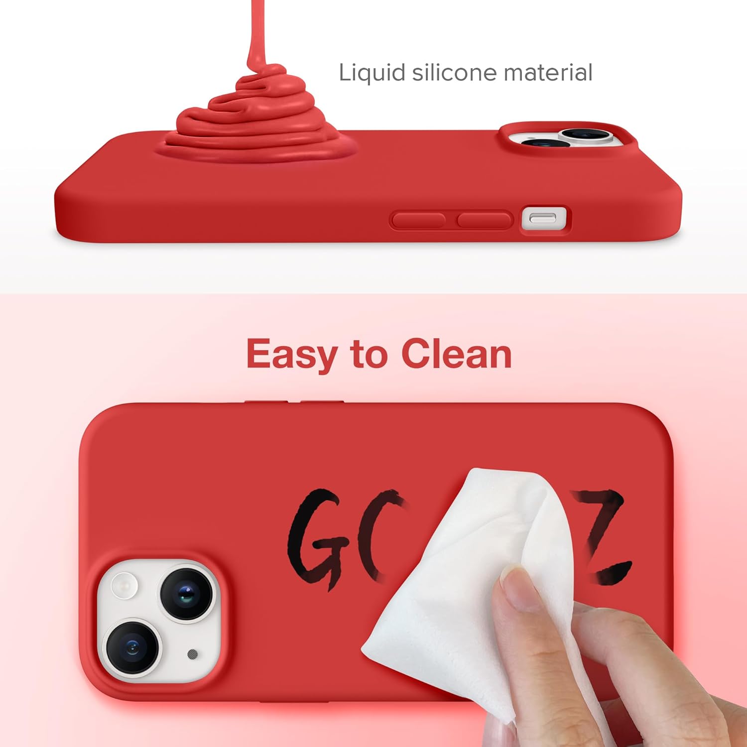 GONEZ for iPhone 14 Case Silicone, with 2X Screen Protector + 2X Camera Lens Protector, [Soft Anti-Scratch Microfiber Lining], Liquid Silicone Shockproof Protective Phone Cover 6.1″, Crimson Red