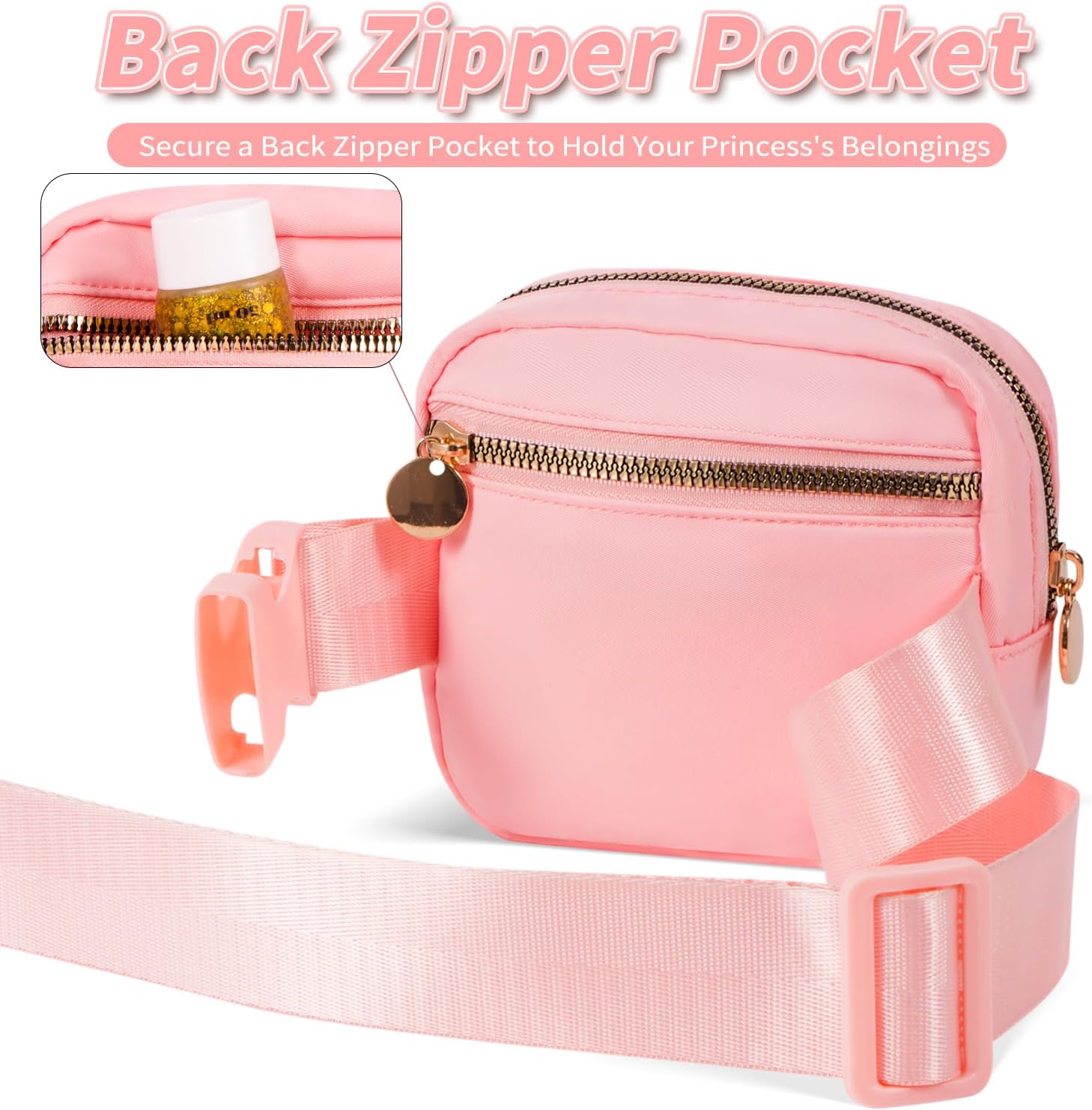 MINI STYLE: The size of the fanny pack is perfect for little girls/kids.The adjustable shoulder strap allows to wear this fanny pack in a variety of ways.Whether wear it around waist as a waist pack or across chest as a crossbody bag, this belt bag will make your princess outfit look cute and chic.