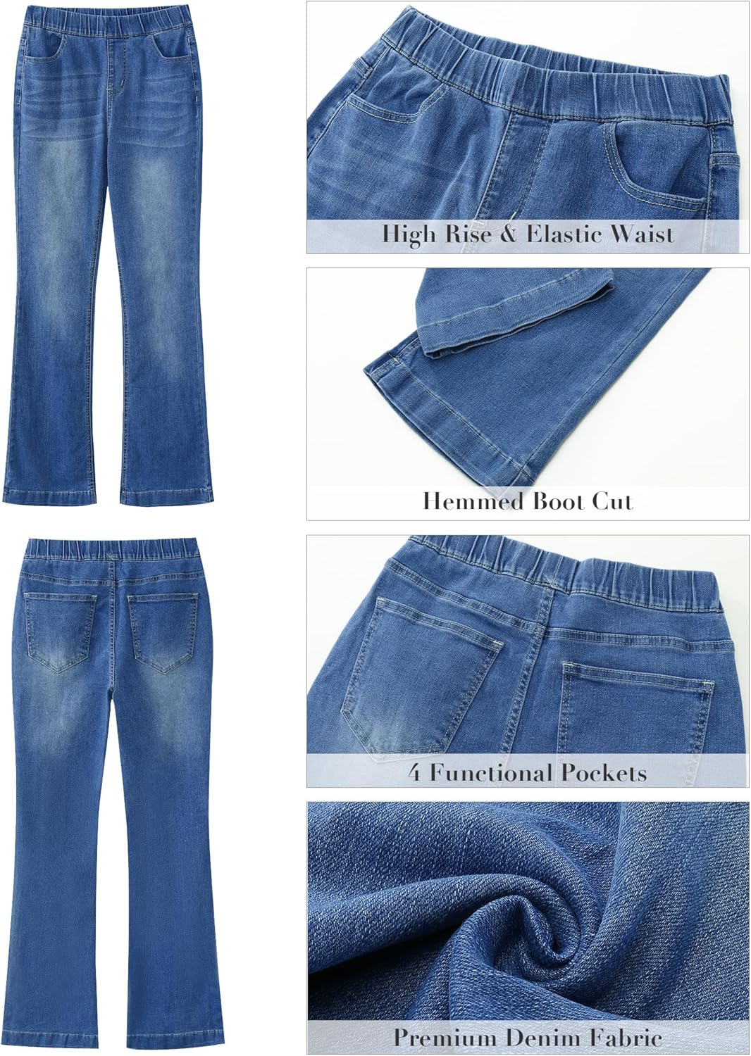 GRAPENT Pull On Jeans for Women High Waisted Stretchy Flare Elastic Waist Bootcut Denim Pants Boot Cut Jean