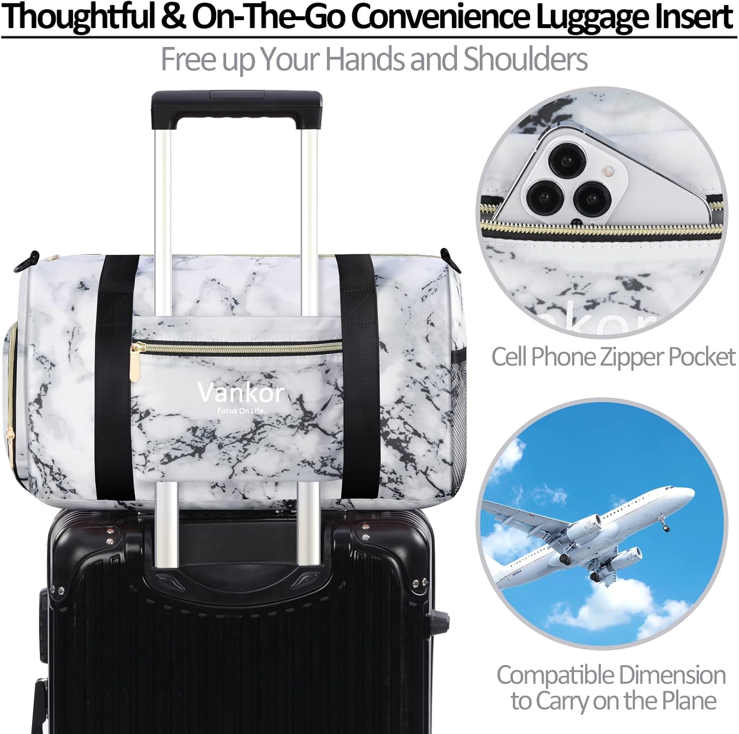 【LARGE CAPACITY】-Vankor’s gym duffle bag were designed with various pockets. One of the best features of the weekend bag is the separate zippered bottom pocket and side mesh pocket that allows you to store shoes or other items you want to keep apart from your clothes.Interior pockets for you can fill them with electronic or small personal items or other essentials required for work or personal travel. Such as laptop, toiletries, wallet, clothes and so on.