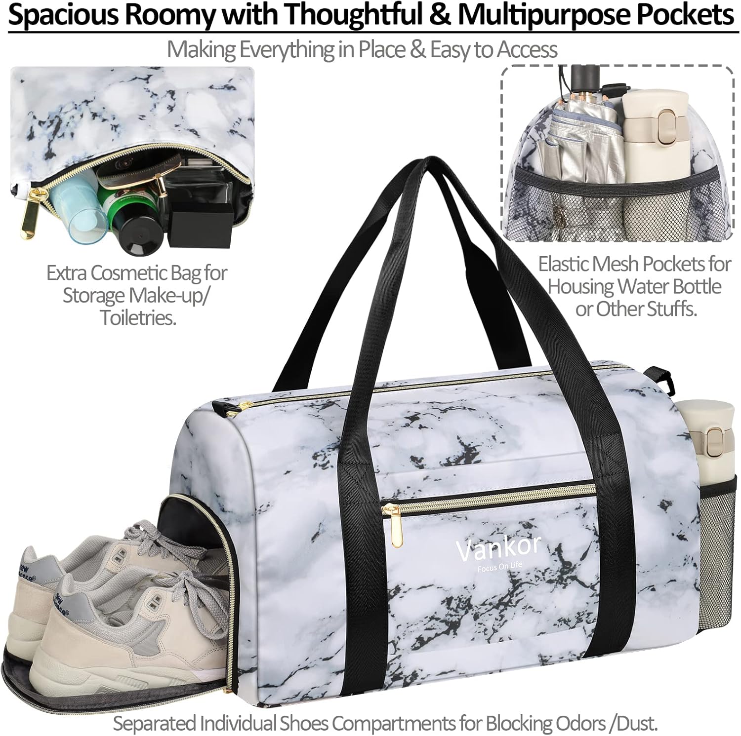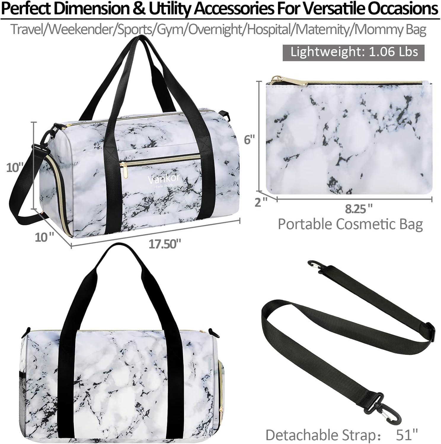 Gym Bag for Women with Shoe Compartment Waterproof, Sports Duffle Bag for Travel Duffel Weekender Carry on Beach Yoga Overnight Luggage Mommy Maternity Hospital Bag Marble 17.5 Inch