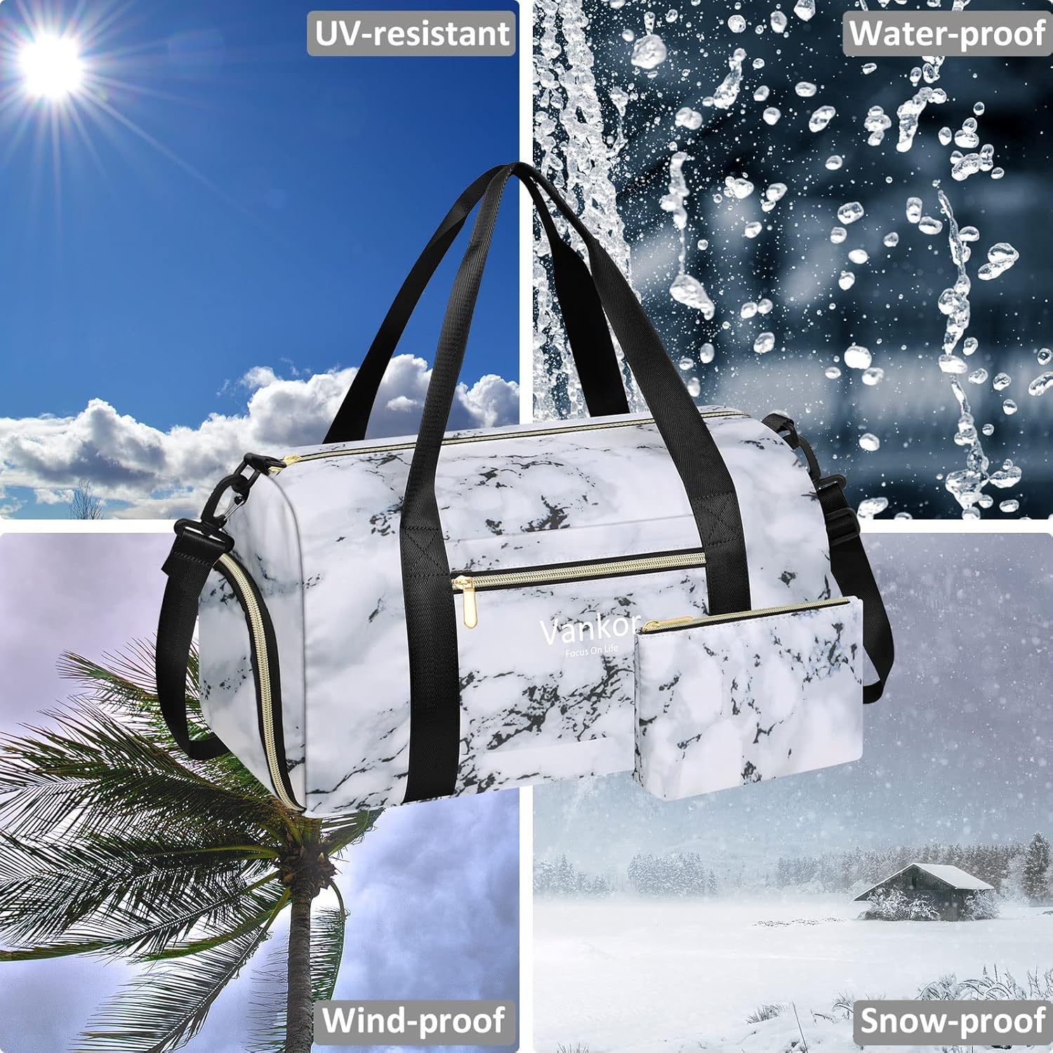 【DURABLE AND WATERPROOF】 -Vankor’s heavy-duty and versatile gym bag is perfect for outdoor adventure and travel. The gym bag for women is constructed with recycled materials and a water-repellent coating. Top loop zipper pulls allow for easy access to the interior and for heavy loads, there’s a reinforced yoke webbing system on the tote and haul handles.