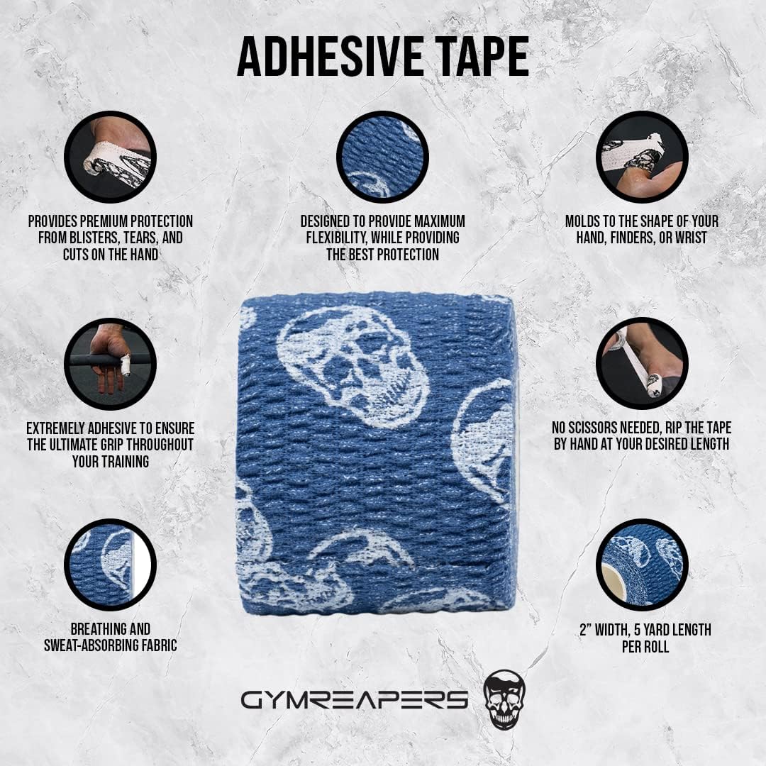 PREMIUM QUALITY ADHESIVE SKULL TAPE – Gymreapers Skull Tape is was formulated out of the need for a higher quality adhesive training tape. Taking the feedback from you, we enhanced the width, length, and quality of the tape to prevent tearing and improve performance on the bar.