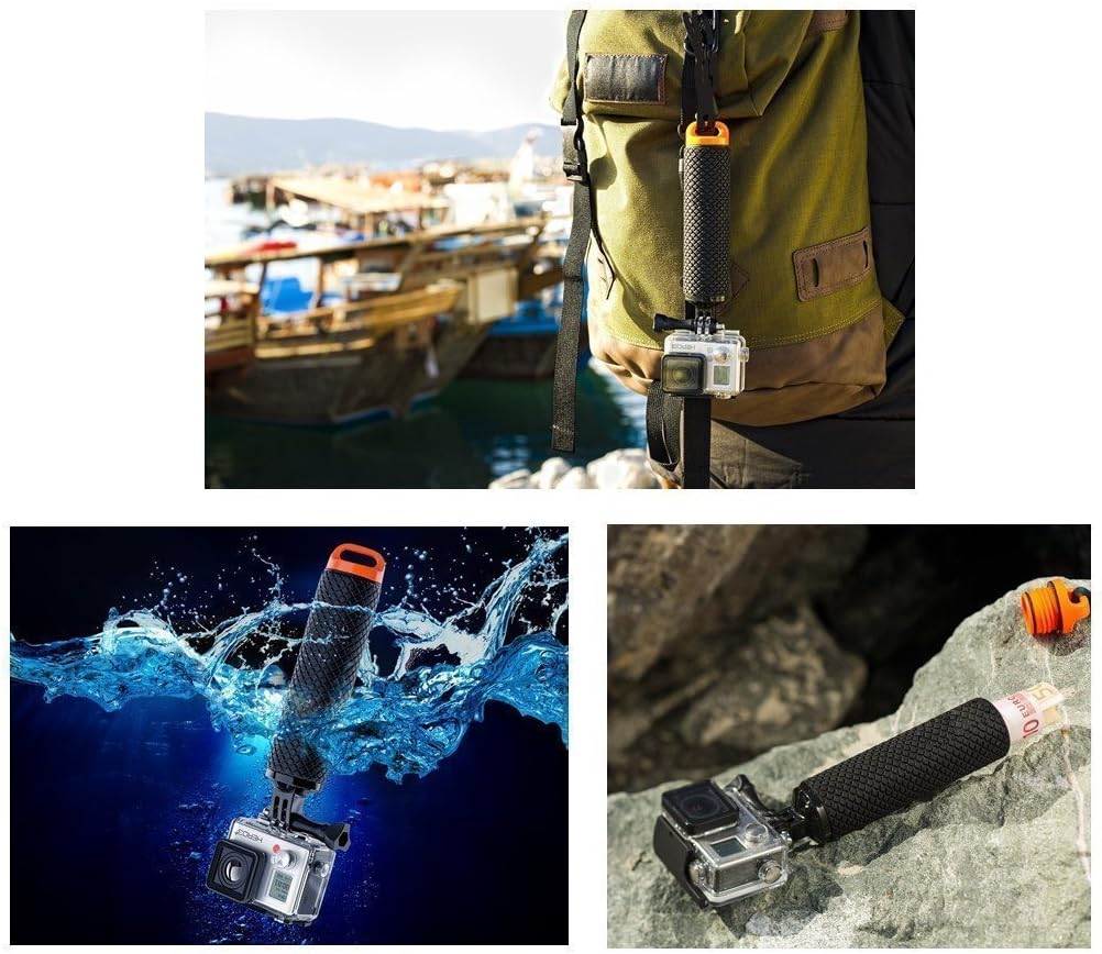 Provide more stable footage than holding the camera by hand, and adjust to any angels you need. Provide an adjustable wrist strap so you don’t need worry your action camera get lost in the water. Designed for use in water, the non-slip foam handle provides tight grip and extra comfort.