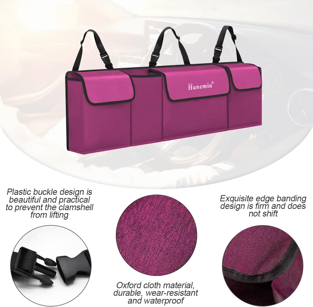 Hanemia Car Trunk Organizer, Backseat Hanging Storage with 4 Large Pockets, Collapsible Cargo Bag with Adjustable Straps Frees Trunk Floor, Sturdy Space Saving Expert for SUV, Truck, Van (Purple)