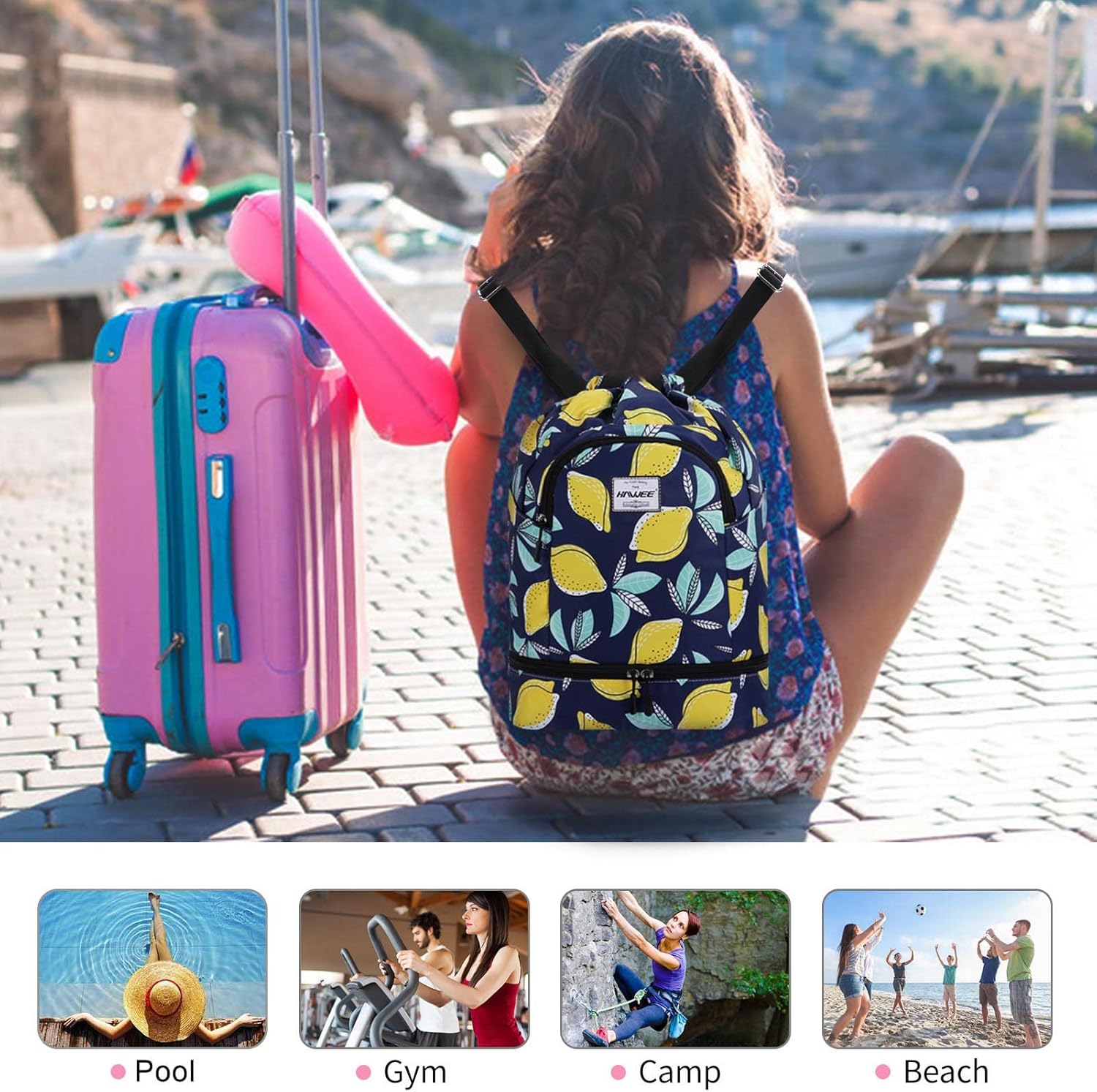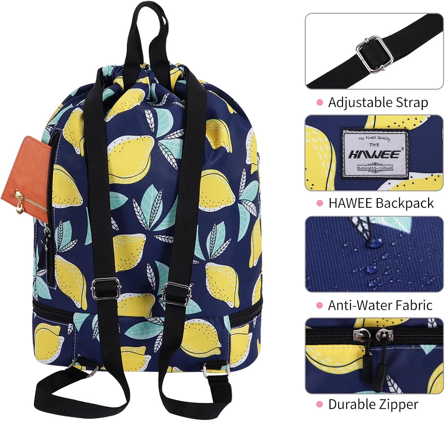 HAWEE Dry Wet Drawstring Backpack with Shoe Compartment for Women Adjustable Gym Bag