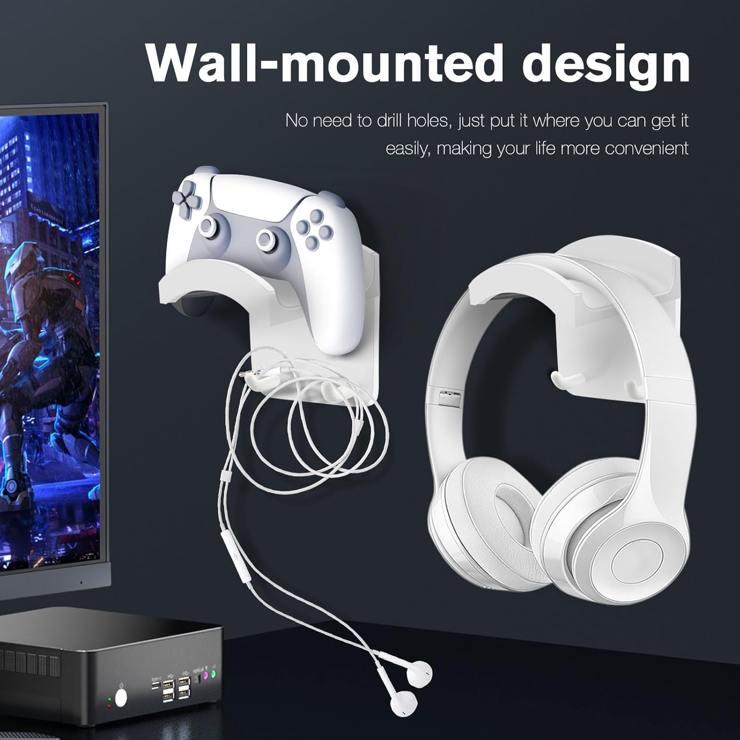 🎧【Easy Installation and Anti-slip Design】: No screws or permanent adhesives are required, making the installation process simple and direct. Equipped with anti-slip pads, it firmly secures gaming accessories, preventing them from slipping or falling off the hooks.
