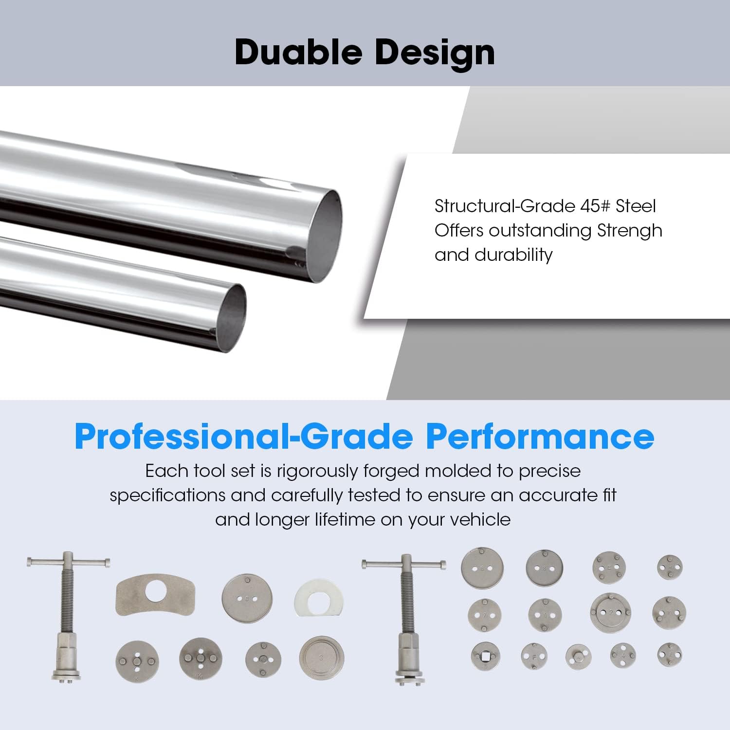 EXCEPTIONAL DURABILITY: This set of brake caliper compression tool is crafted from structural-grade 45# steel with industry-leading technology to offer superior strength and durability. The protective sandblasted surface ensure superior long-lasting wear and corrosion resistance