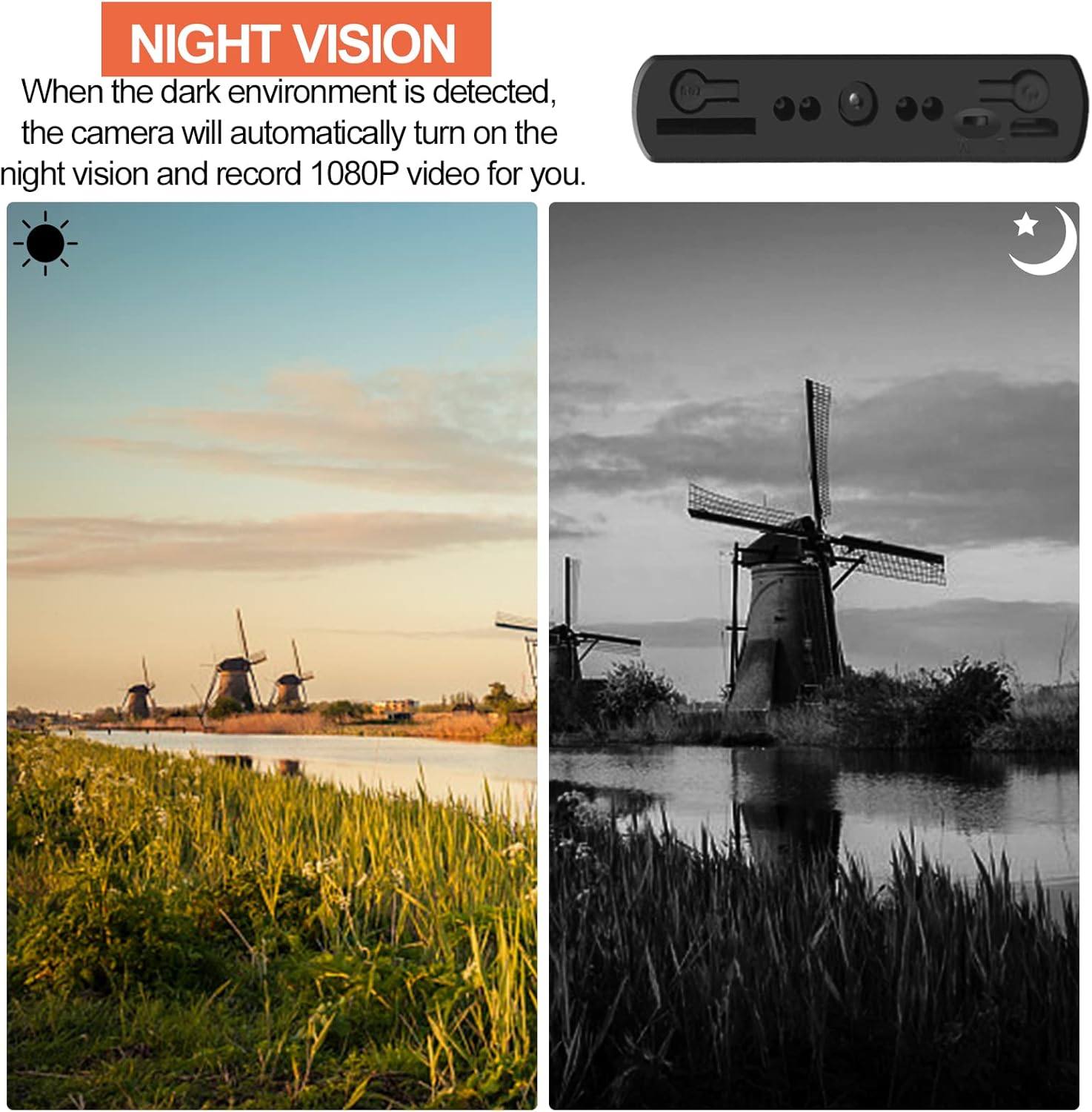 【Motion Detection & Gravity Sensor】This camera is perfect for you to go out and investigate or to use at home. No need to worry about it being placed improperly to shoot upside down video, because it has the function of gravity sensor. You can hold it at will, without thinking about the direction. Not only that, the motion detection function ensures that it captures people or objects that come within the shooting range in time and automatically starts recording.