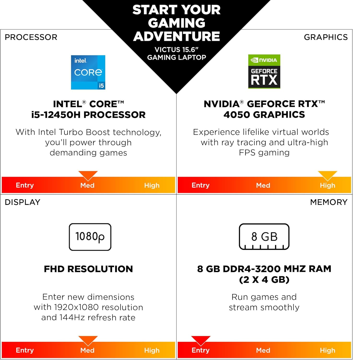 DYNAMIC INTEL CORE PROCESSOR – 12th Gen Intel Core i5-12450H processor distributes performance where you need it the most— saving you time and increasing your ability to do the things you actually want