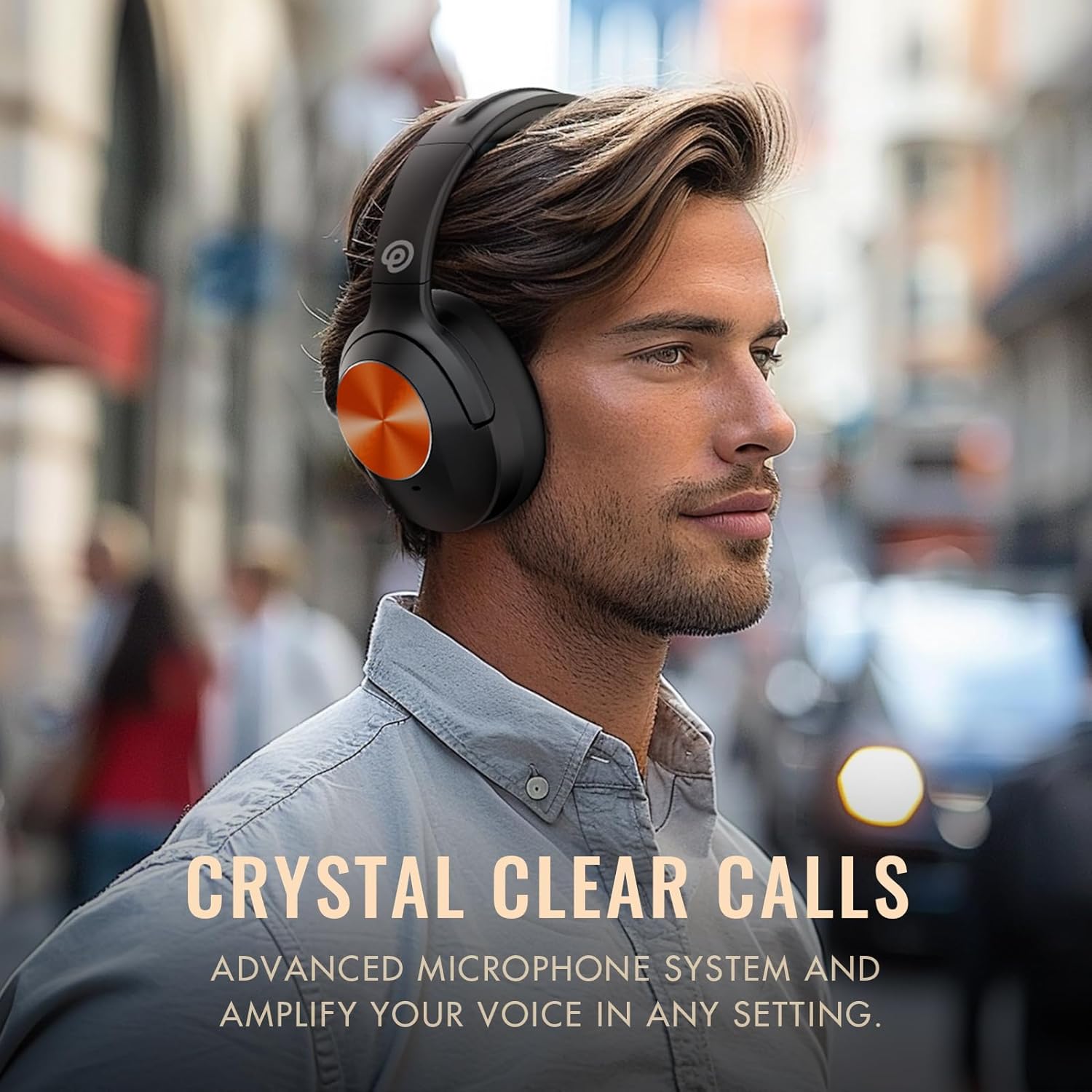 Hybrid Active Noise Cancelling Headphones, Wireless Over Ear Bluetooth Headphones, Headphones Wireless with Transparency Mode, Deep Bass, Comfort Fit Ear Cups, 30 Hrs, for Home Office Travel,Orange