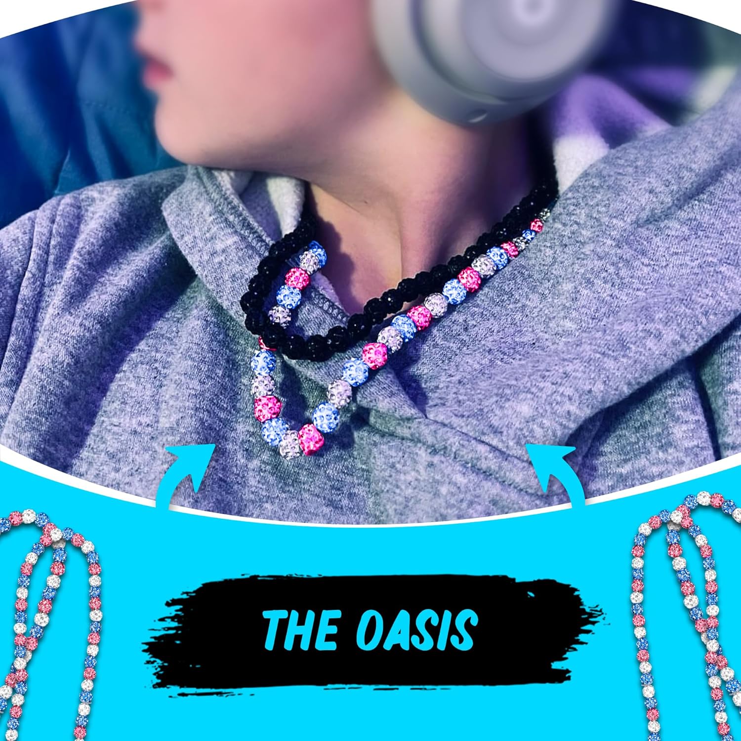 Ice Collection Necklace – Athletic-Inspired Jewelry for Competitive Ball Players and Athletes, Stylish Sports Accessory (18 Inch, Oasis | White/Pink/Blue)