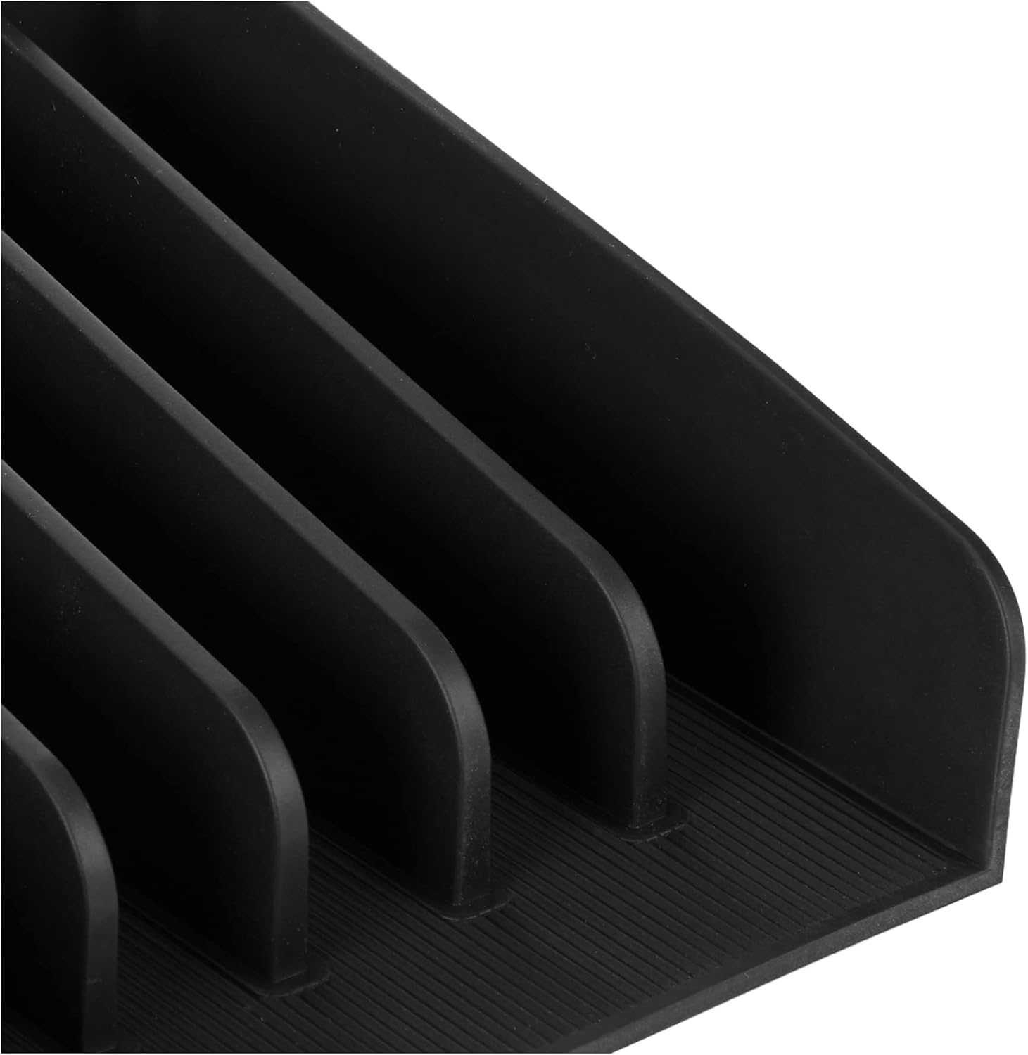 Created in collaboration with Sarah Tanno, the Global Artistry Director of Haus Laboratories and Lady Gaga’s long-time makeup artist, The Sarah Tanno Collection by iDesign offers a curated collection of makeup organizers for your go-to products and tools. This side palette organizer easily fits into medium and large sized stacking cosmetic drawers from the The Sarah Tanno Collection by iDesign or on their lid tops to add a convenient way to take your organization to the next level. With six divided slots, you can slide in and store a variety of cosmetic palettes with ranging sizes such as eyeshadow palettes, contouring palettes, lip gloss palettes, blush palettes, eyebrow kits, and many more cosmetic or makeup palettes alike. The sideways orientation makes organizing a breeze by allowing for even the longest palettes to stand up while still being able to fit in the drawers. This organizer keeps products in place so they don’t roll around, fall off and break, or mess up your organization as you open and close your drawers. Constructed with high-quality heat-resistant silicone, this organizer helps prevent the bottoms or lids of your BPA-free plastic drawers from scratching, staining, or other damages for long-lasting use while protecting your stored contents. As needed, cleaning is quick and easy by hand using makeup remover. This organizer comes in the color black and measures 6.4″ x 6.4″ x 2.6″ to fit like a glove inside or on top of coordinating drawers and lids. With the The Sarah Tanno Collection by iDesign, you can #LiveSimply every day.