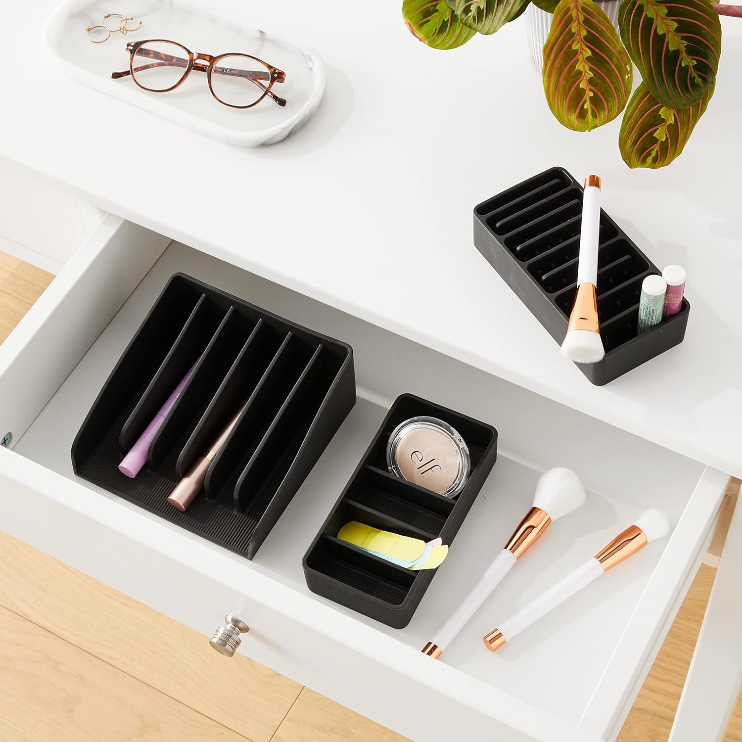 CREATES LONG-LASTING DURABILITY – The silicone construction of this organizer tray will not scratch or stain the bottoms and tops of drawers and lids. It’s also easy to clean as needed by hand with makeup remover.