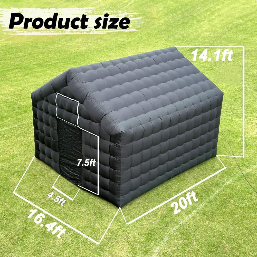 【Convenient,Easy To Carry】- Inflatale Disco Party Tent is Made Of 210D Oxford Cloth. Oxford Cloth Is Light And Durable;External dimension:20ftx16.4ftx14.1ft, Inner dimension:17ftx13.4ftx12.6ft, The tent can fit 18-25 people inside.
