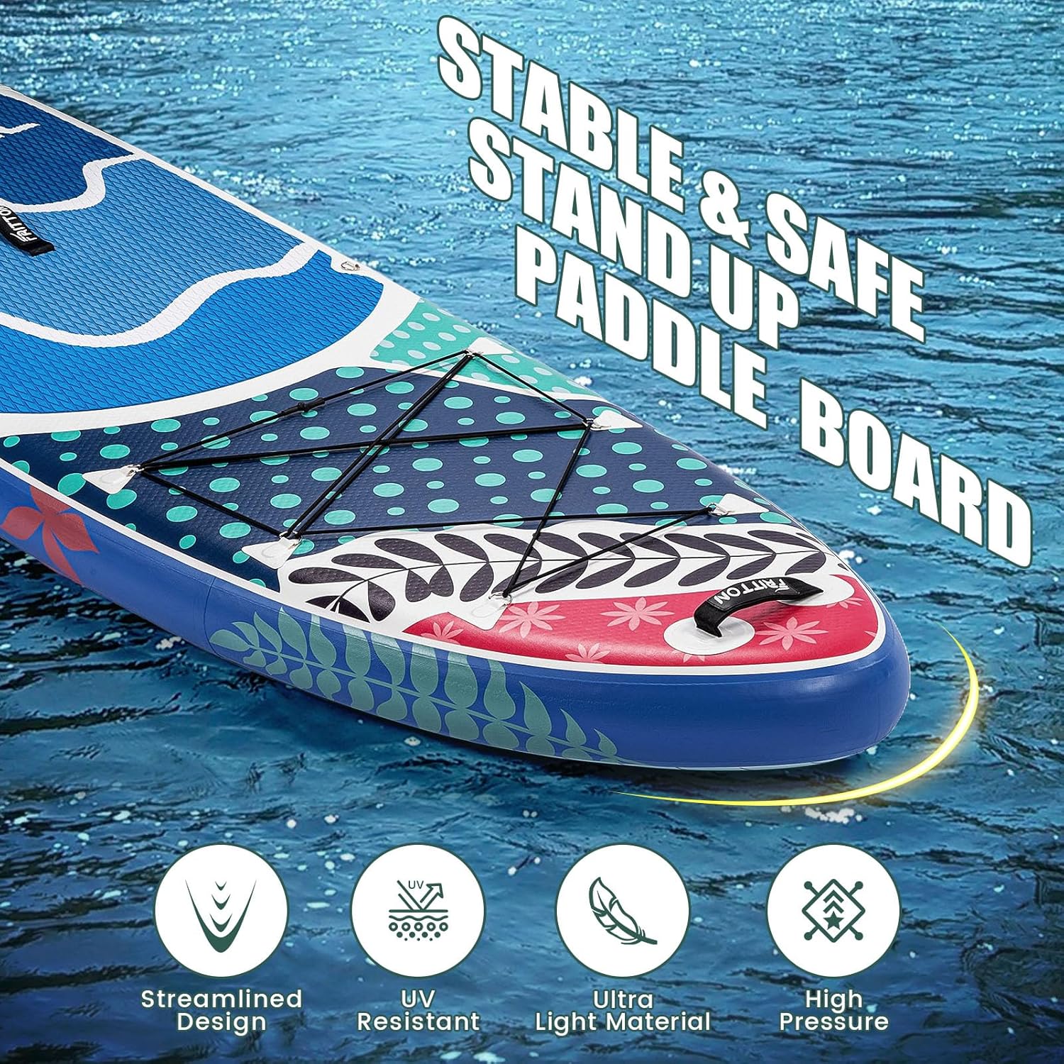 Inflatable Paddle Boards for Adults, 11′ Stand Up Paddle Board with Premium SUP Accessories, Stand-up Paddleboards with Wider Anti-skid Deck & 350 LBS Capicity, SUP Board Suitable for All Skill Levels