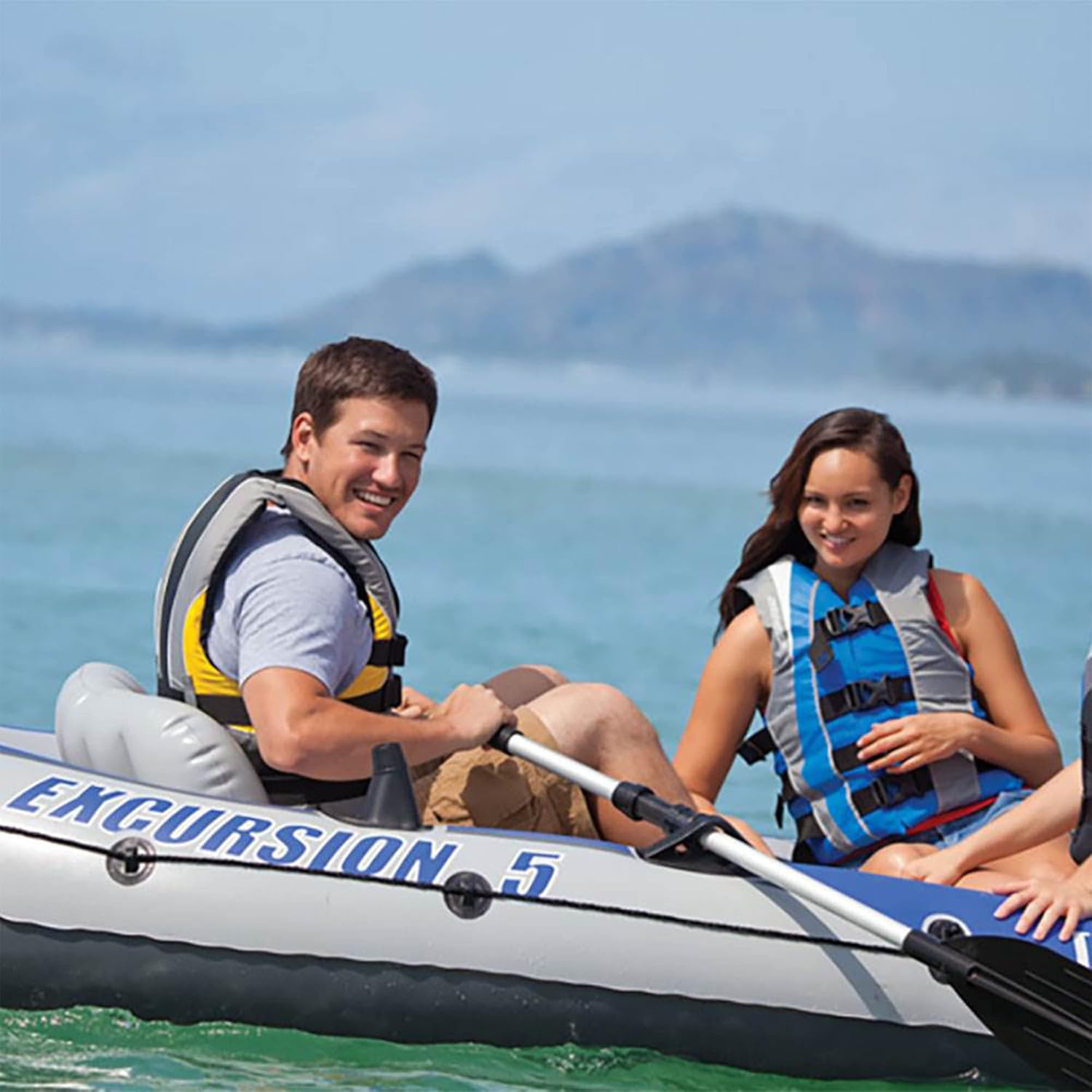 Intex Excursion 5 Person Inflatable Outdoor Fishing Raft Boat Set with 2 Aluminum Oars and Air Pump with a Composite Motor Mount Kit