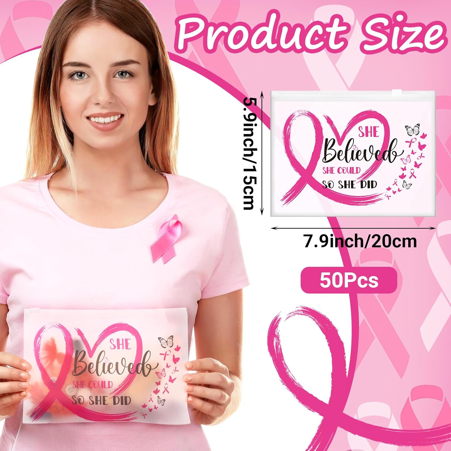 Breast Cancer Awareness Promotional Set: You will receive 50 breast cancer awareness bags, which are beautifully designed and suitable for daily use and sharing,showcase your support for breast cancer patients
