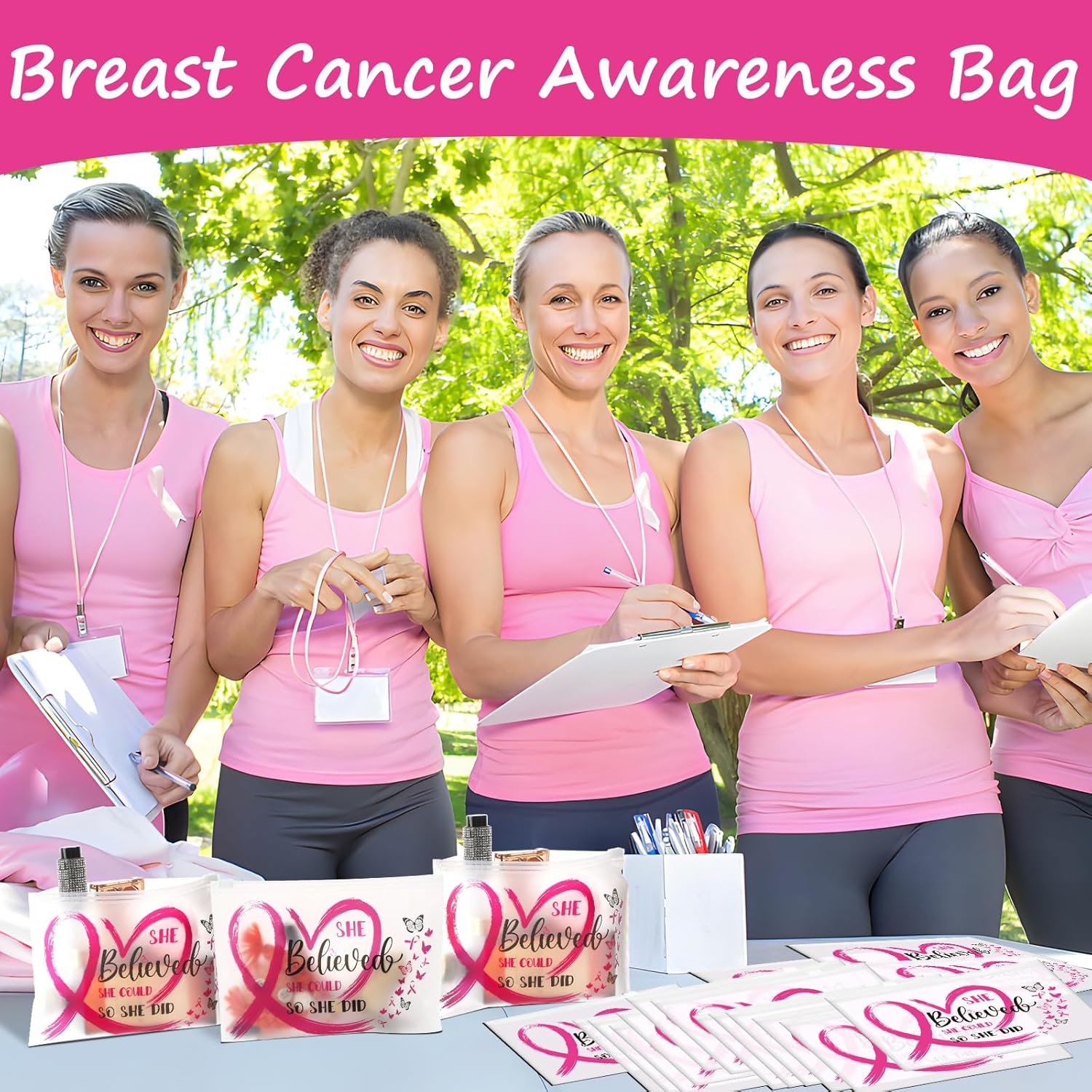 Jansun 50 Pcs Breast Cancer Awareness Make up Bag Pink Ribbon Cosmetic Bags Zipper Travel Toiletry Bag Breast Cancer Survivor Gifts for Woman Girls Charity