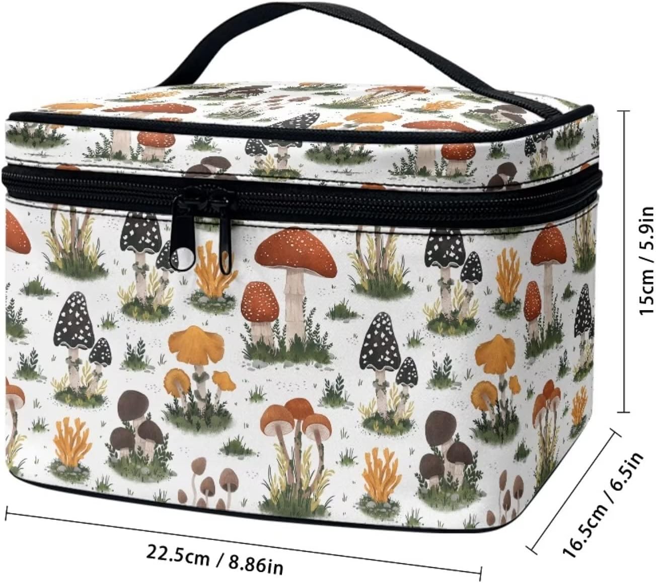 JoyLamoria Mushroom Portable Makeup Case Printed Cosmetics Tote Pouch Zipper Closure