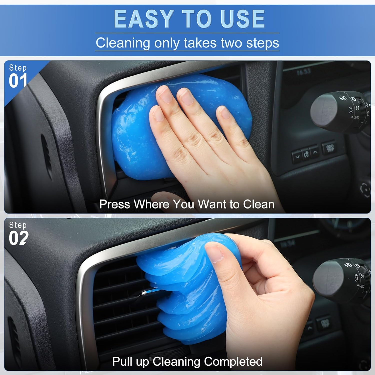 Easy to use: Compared to regular car cleaning tools, this car cleaning gel is softer and easier to clean dirt from crevices in your car. First, take a small piece of gel and knead it before use, then slowly press the cleaning gel into a sturdy surface such as the car’s air vents, and then slowly pull it out and the dust will be carried away by the gel.