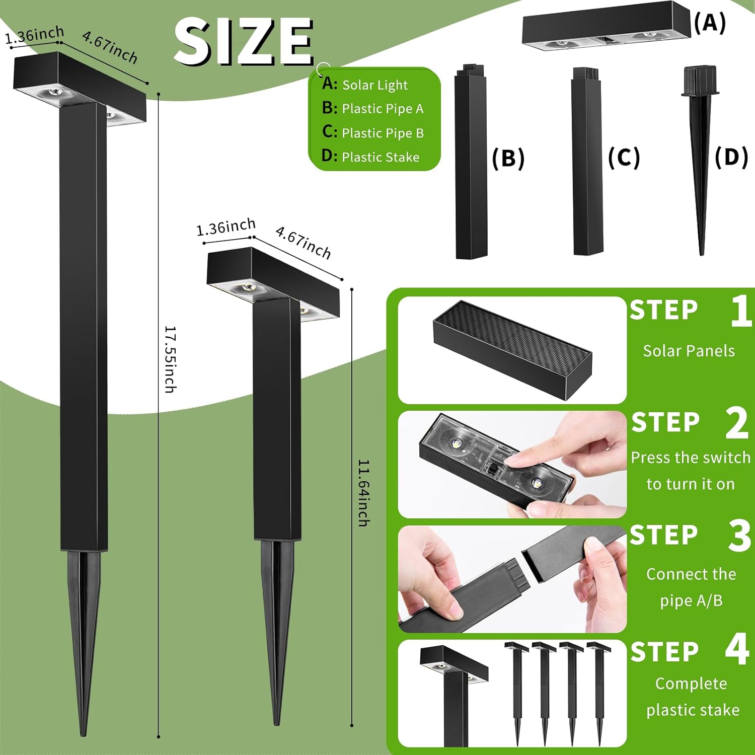 Effortless Installation – Adjustable 2 Heights: No additional tools are required to install solar path lights. It takes just a few seconds to install the solar walkway lights by pushing them into the ground and illuminate the selected area. Our stakes are available in two different heights, allowing for the installation of one or two stakes, with adjustable height for convenient storage. KINKAI solar lights outdoor waterproof are designed to meet a variety of lighting and decorative needs