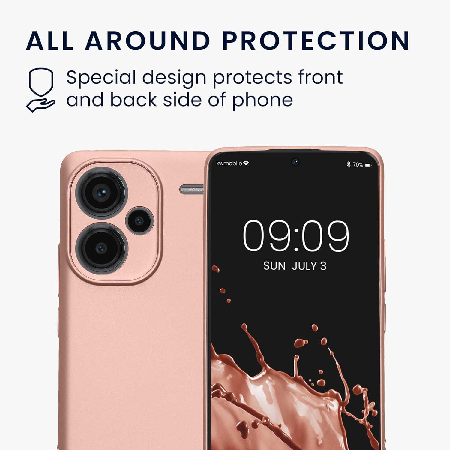 kwmobile Case Compatible with Xiaomi Redmi Note 13 Pro+ 5G / Redmi Note 13 Pro Plus 5G Case -Soft TPU Back Phone Cover – with Metallic Look – Metallic Rose Gold