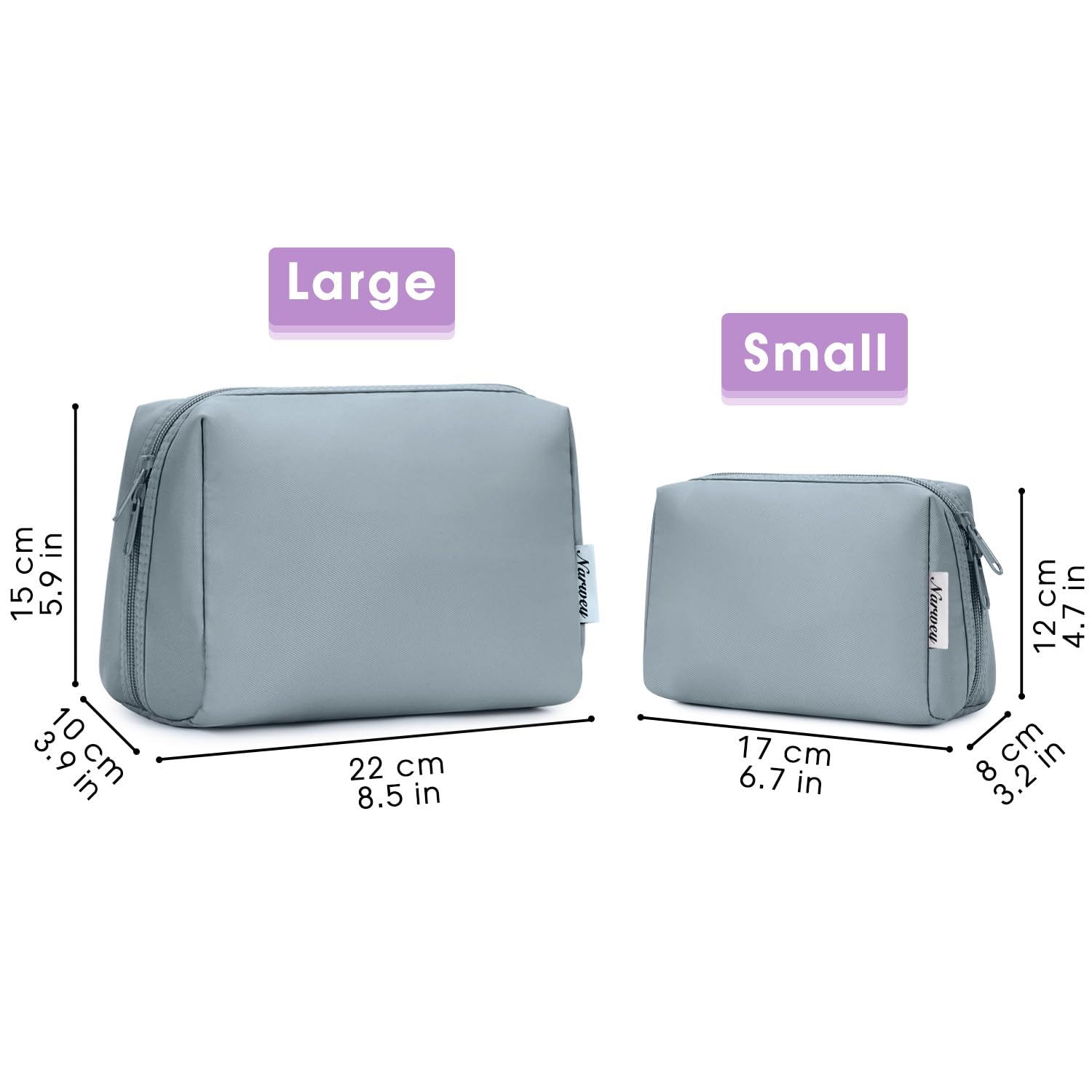 Large Makeup Bag Zipper Pouch Travel Cosmetic Organizer for Women (Large, Greyish Blue)
