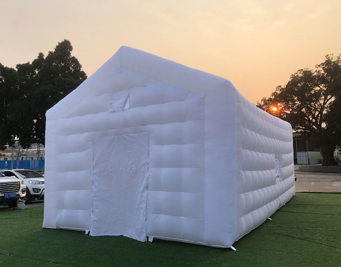 Large White Inflatable Cube Wedding Tent Square Gazebo Event Room Big Mobile Portable Inflatable Night Club Party Pavilion with LED Lights for Backyard/Outdoor Events(29.5ftx16.5ft)