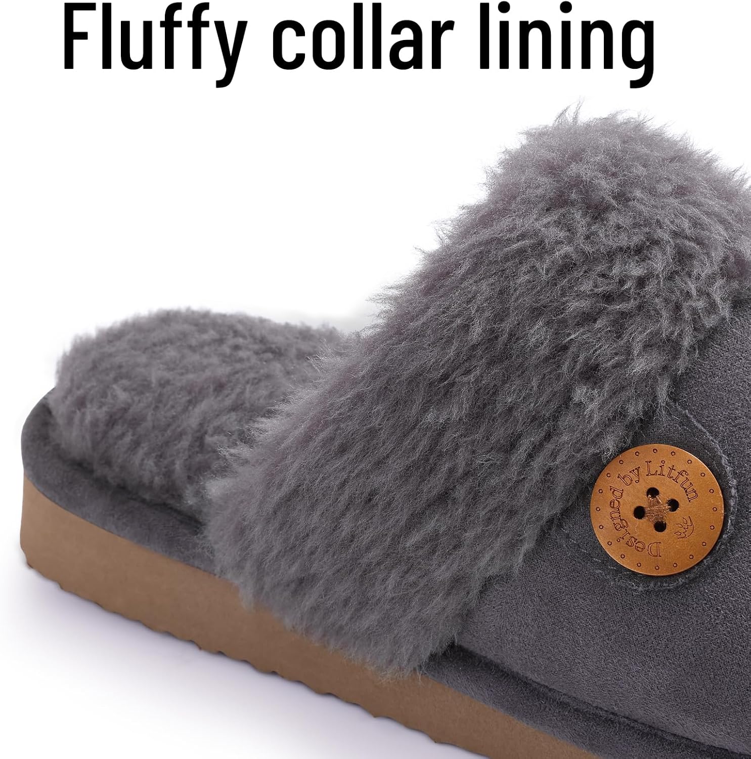 Litfun Fuzzy Slippers for Women with Memory Foam Winter Fluffy House Shoes Indoor Outdoor