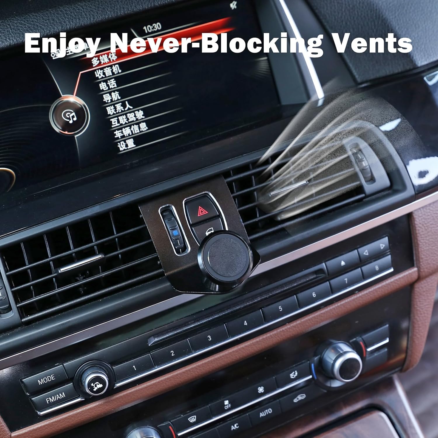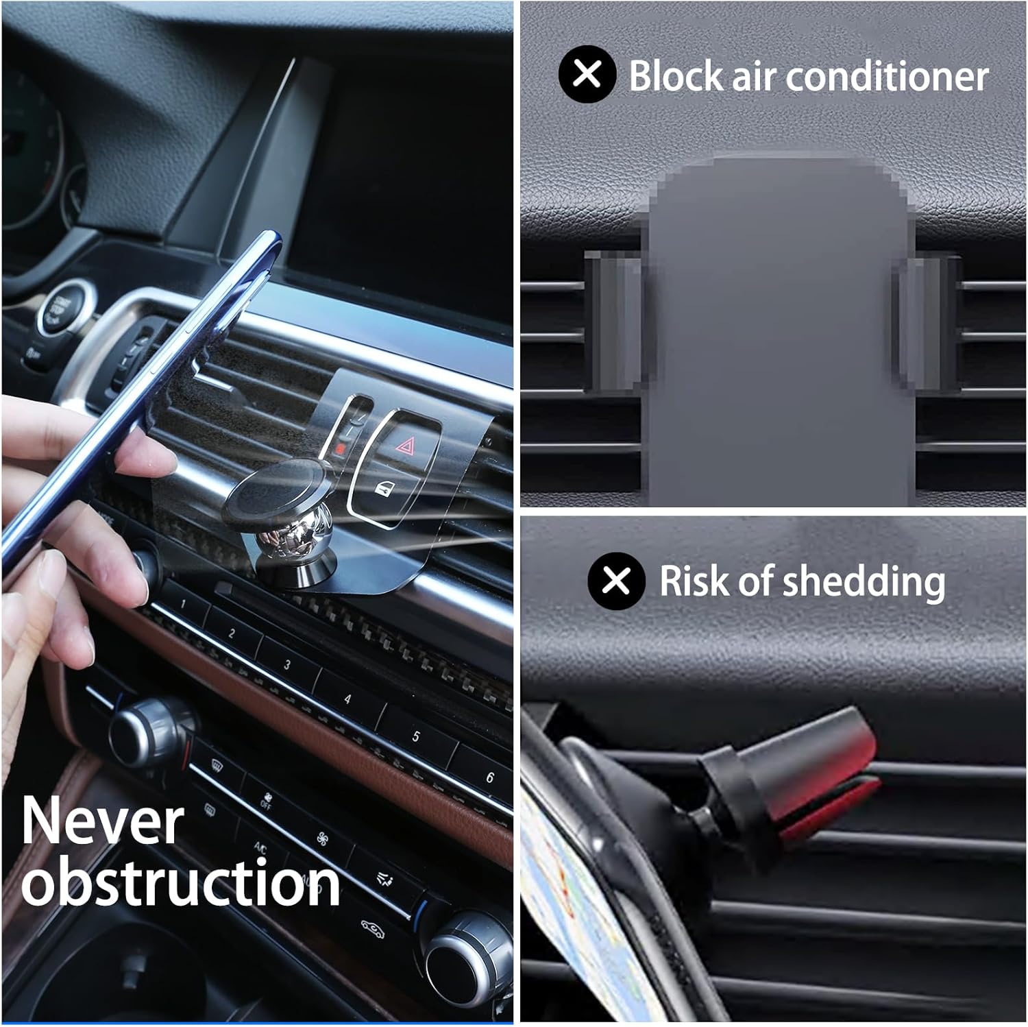 Compact Design and Solid Materials 360 degree rotary phone mount is specially designed BMW F Series cars. The mount itself was made of Aluminium Alloy. The phone mount is designed to be mounted on the upper location of the dashboard where the emergency signal and door lock buttons are located.Doesn’t block the air vent, The car mount is fited with 4 small bolts on four corners to ensure.it’s capability of holding your electronic devices in place.