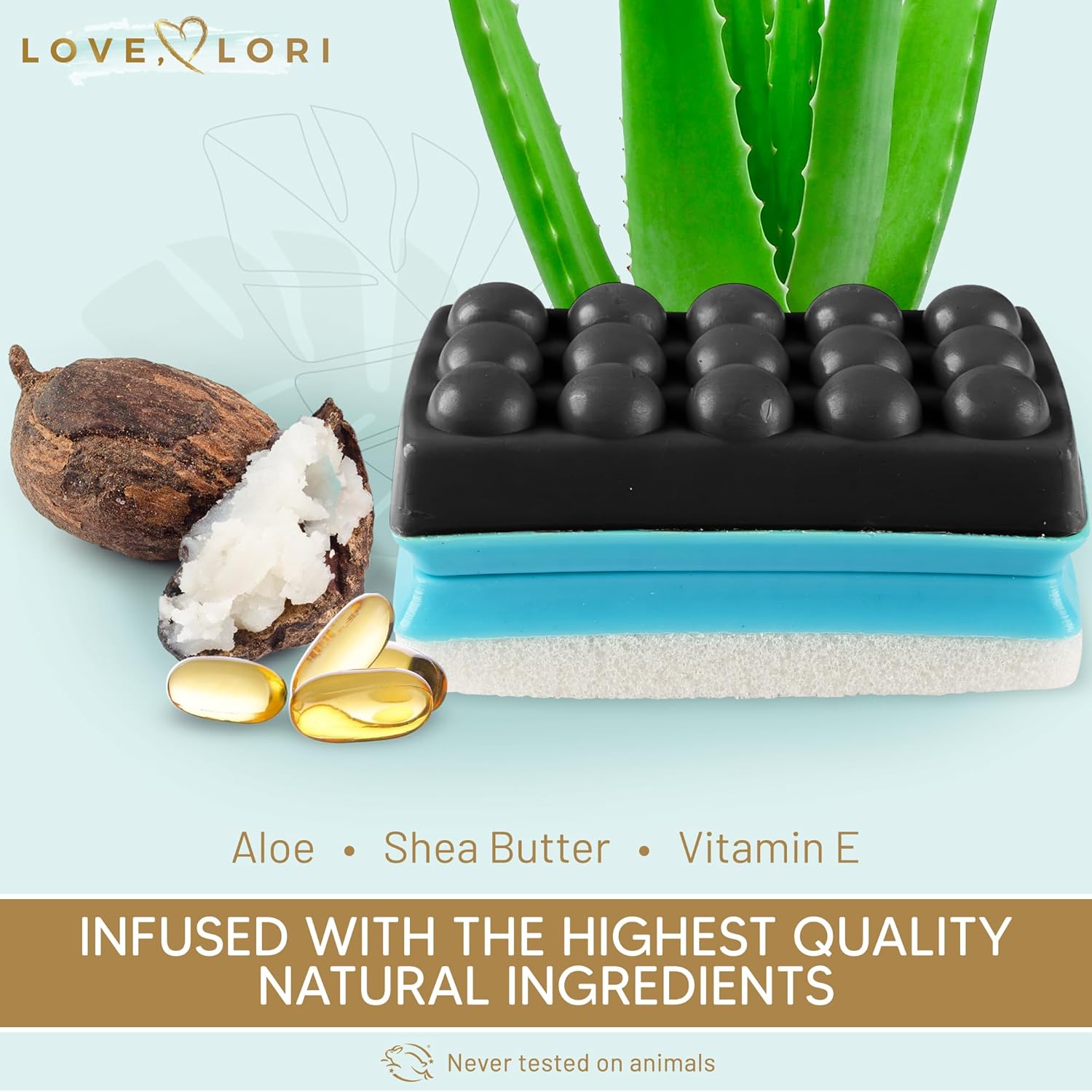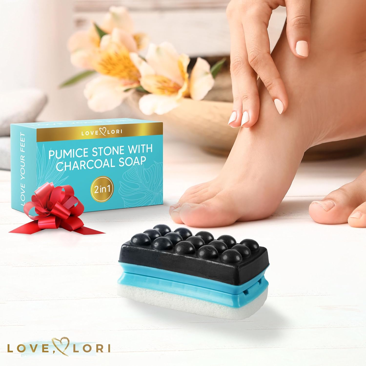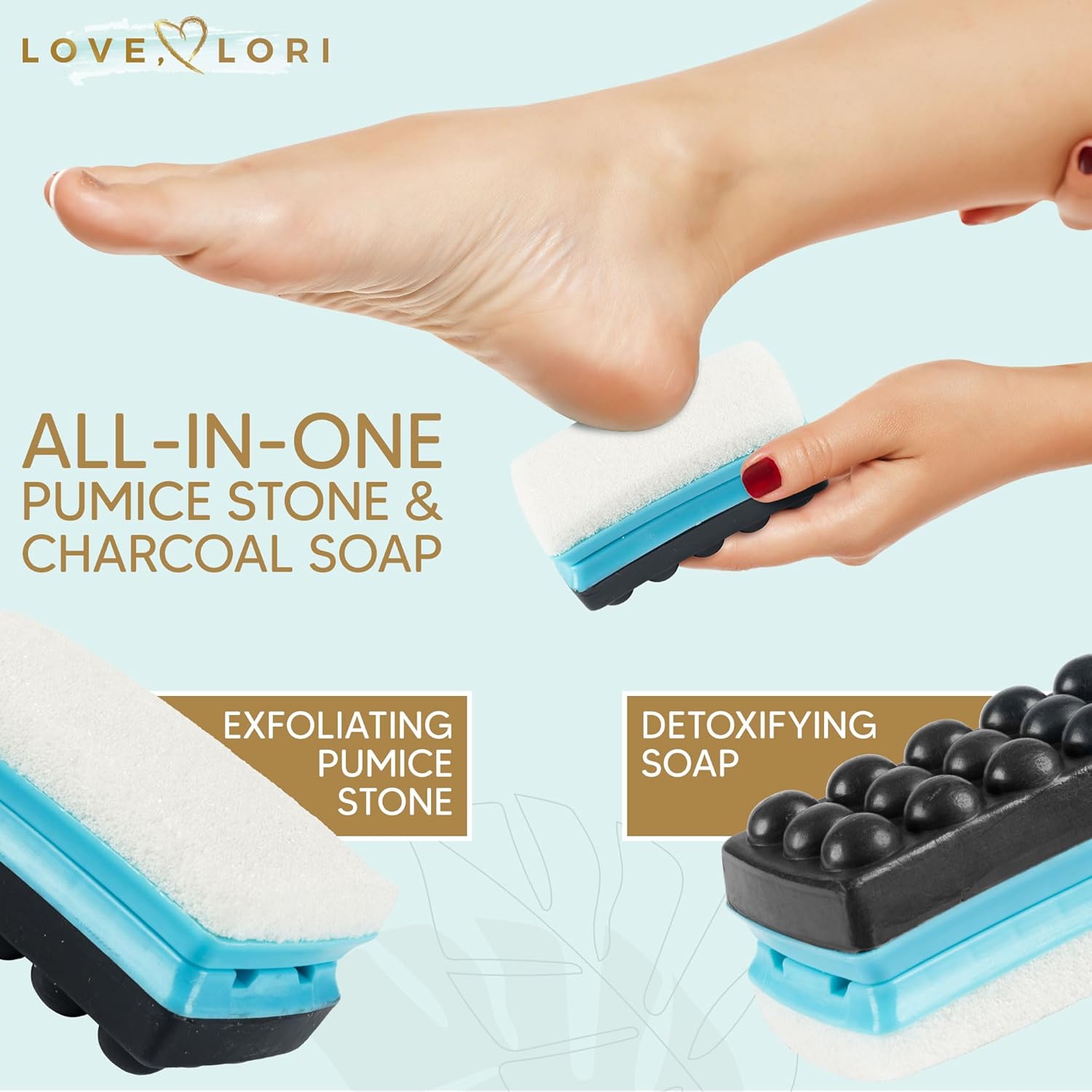 LOVE, LORI Pumice Foot Stone & Detoxifying Charcoal Foot Soap, Self Care Items for Women, Foot Scrubber & Foot Care Kit, Shower Accessories & Self Care Kit Gift