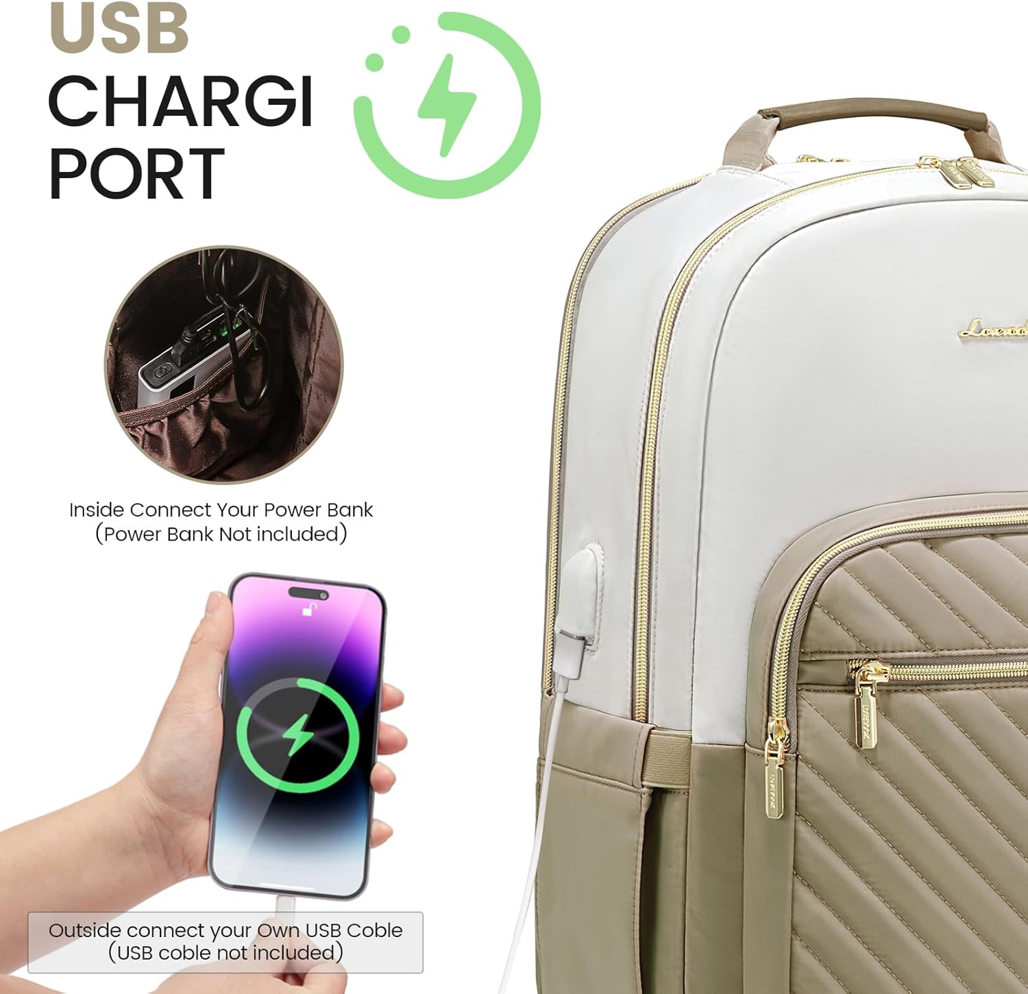 LOVEVOOK Laptop Backpack Women,15.6 Inch Laptop Bag Computer Backpack for Women,Professional Waterproof Women Travel Backpack Purse Work Bag College Teacher Carry on Backpack Daypack,Beige-Khaki-Khaki