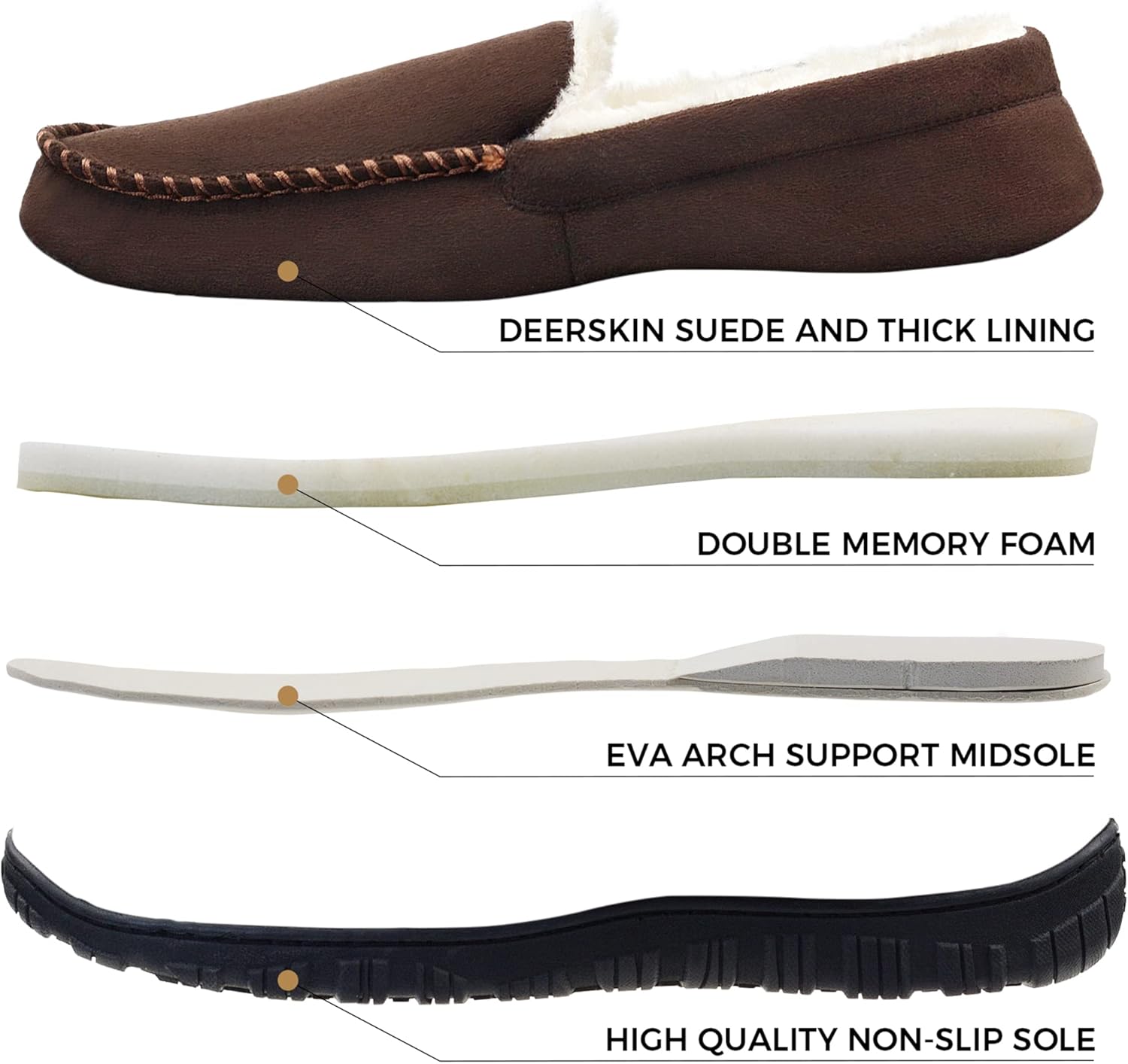 Lulex Moccasins for Men House Slippers Indoor Outdoor Plush Mens Bedroom Shoes with Hard Sole