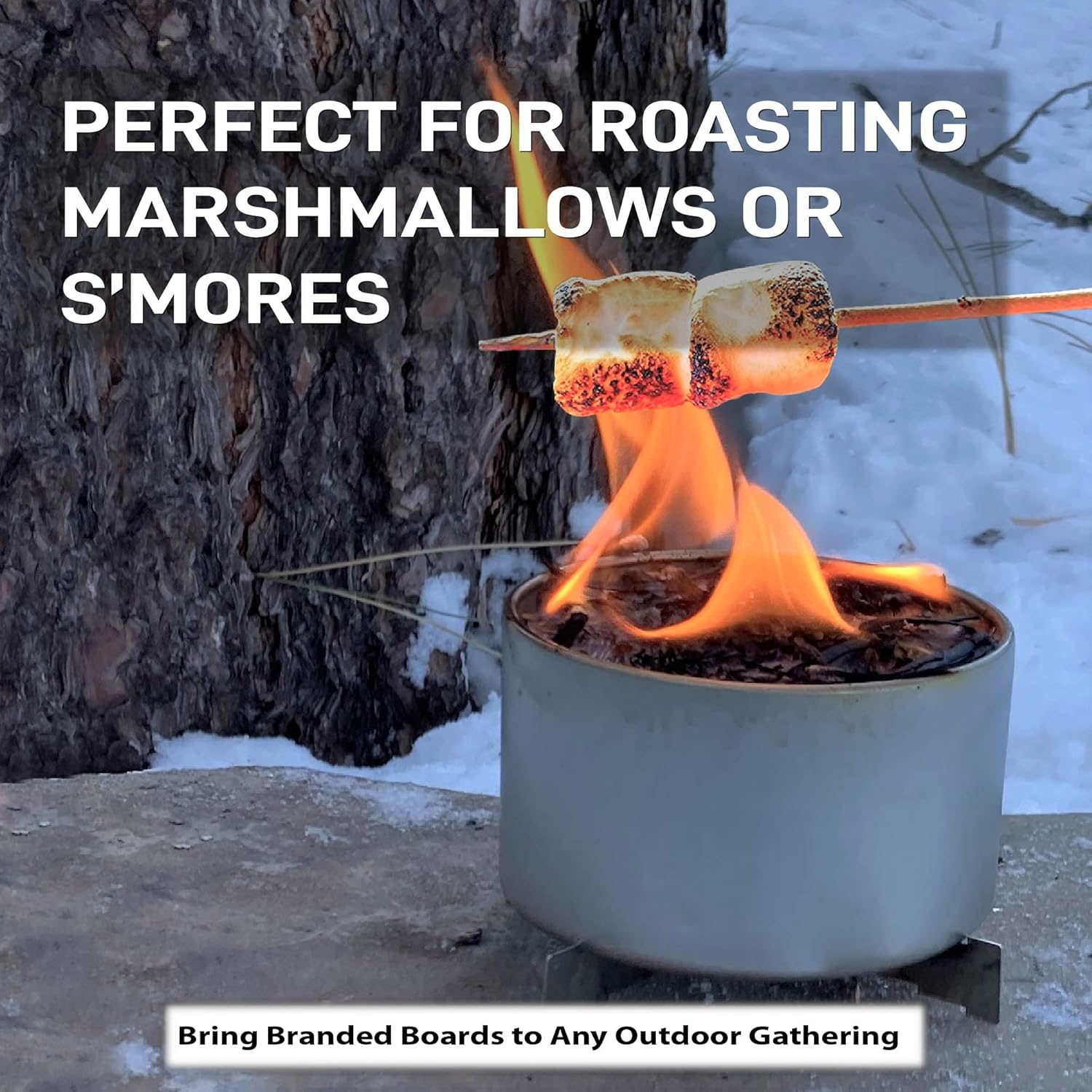 Great for roasting marshmallows or making s’mores. Real Wood Campfire made with all natural non-toxic materials. Safe for cooking, easy to light and easy to put out (Just Slide The Lid On To Extinguish).