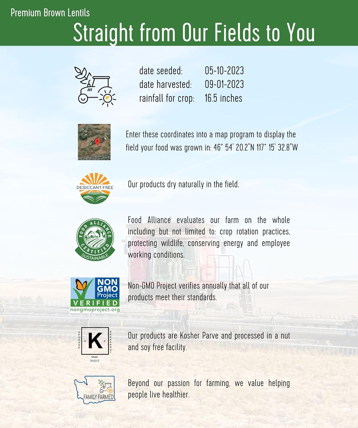Mader Family Farmed Non-GMO Brown Lentils: Palouse Brand, Non-GMO, Kosher, Bulk