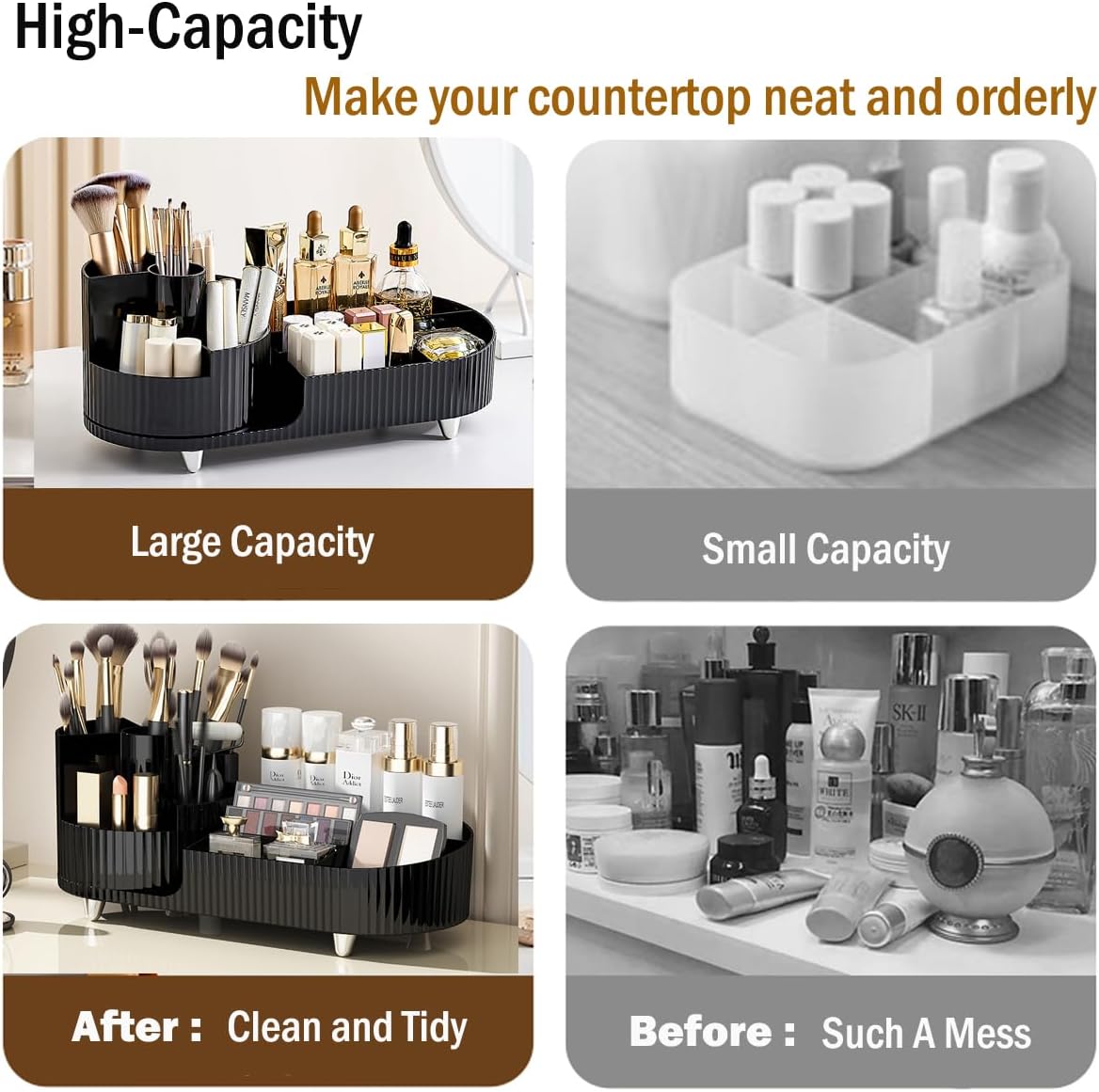 Makeup Organizer Countertop Rotating Makeup Organizer for Vanity Large Capacity Cosmetic Display Case with Makeup Brush Holder Cosmetic Organizer Countertop(Black)