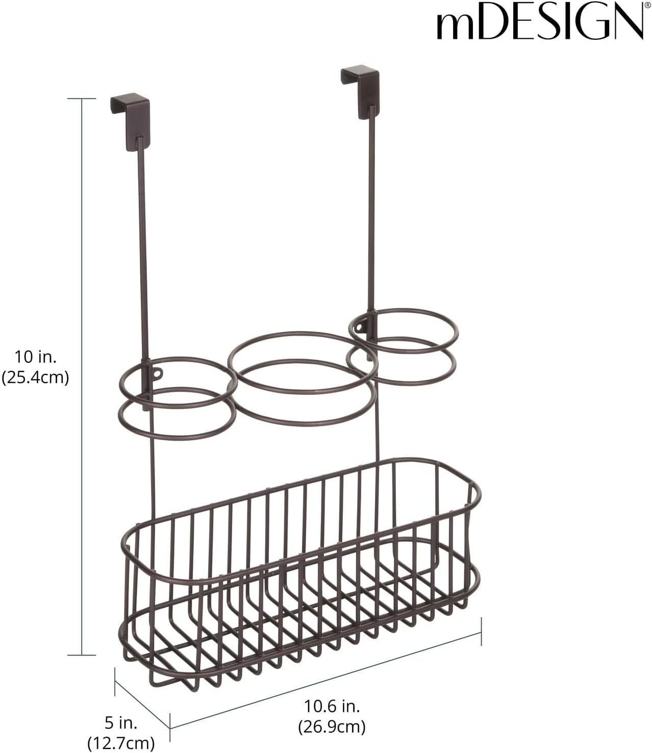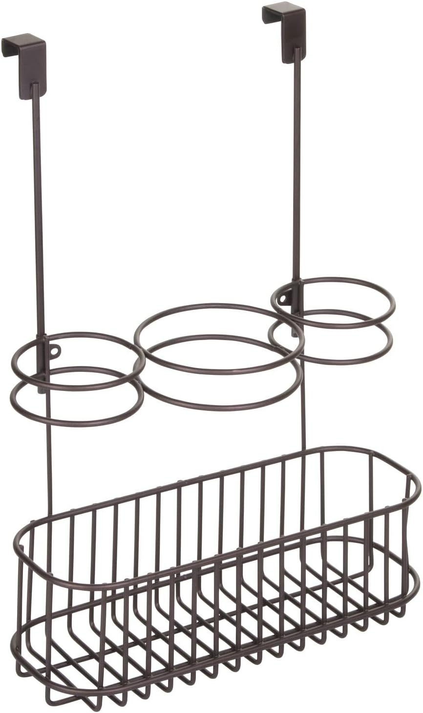 mDesign Steel Over Cabinet Door Hair Care, Hot Styling Tool Organizer Storage Basket for Hair Dryer, Flat Irons, Curling Wands, Straighteners, Space Saving, 3 Sections, Concerto Collection, Bronze