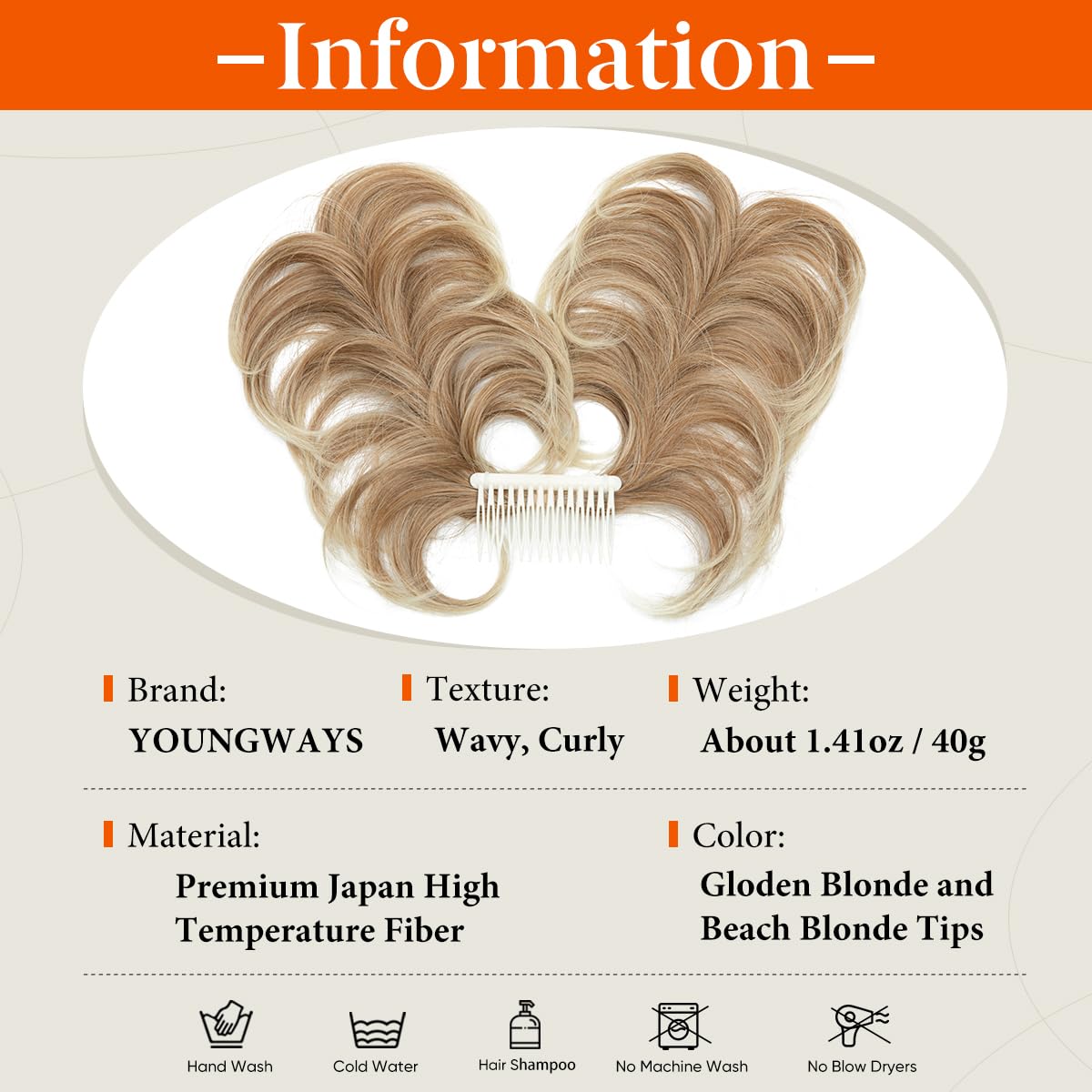 This Messy Bun Hair Piece is worn by a side comb. these twist combs are made of plastic, so that they are lightweight and won’t burden on your head or scratch your scalp, not easy to break.