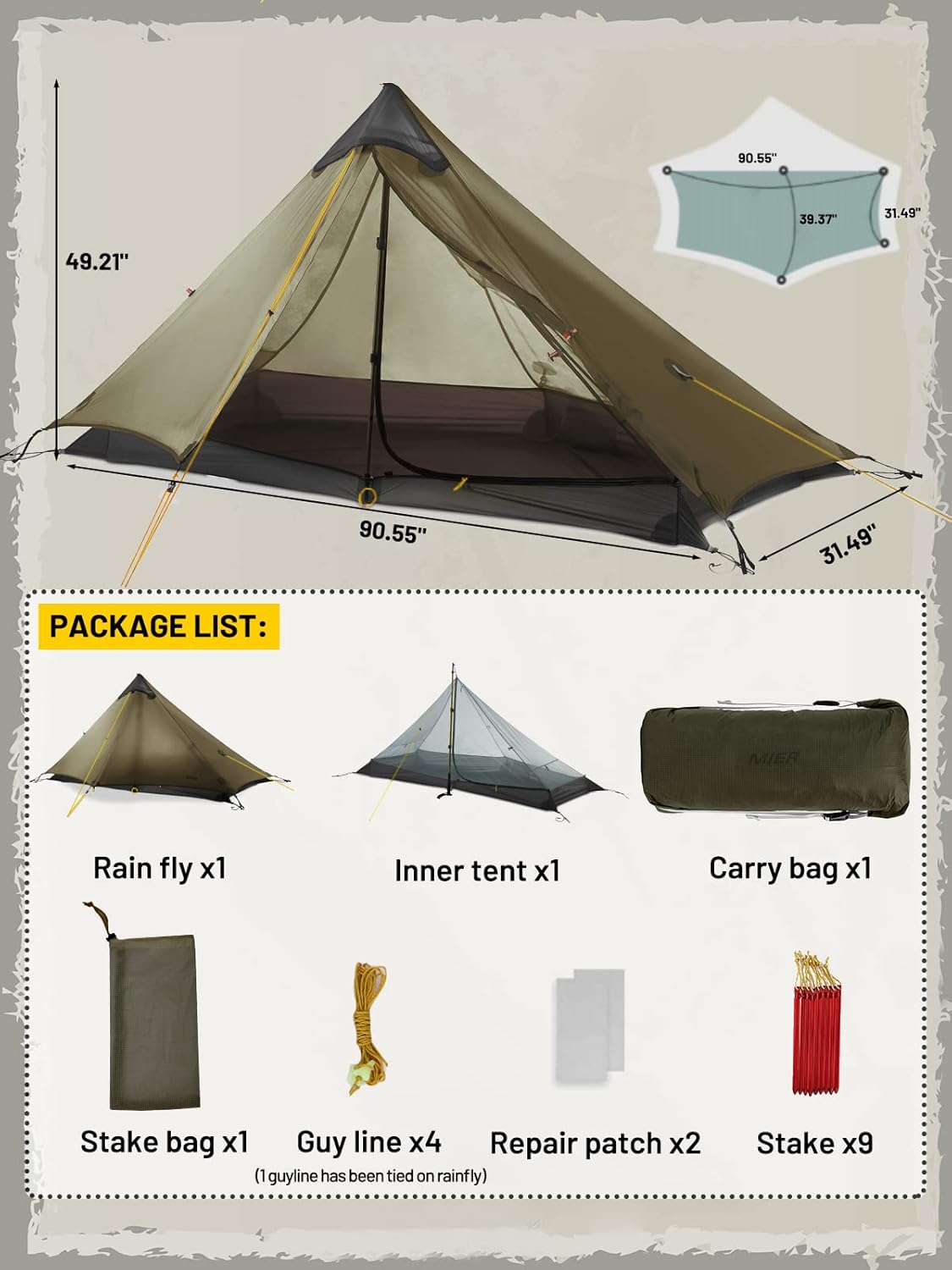 Be the first to review “MIER Lanshan Ultralight Tent 3-Season Backpacking Tent for 1-Person or 2-Person Camping, Trekking, Kayaking, Climbing, Hiking”