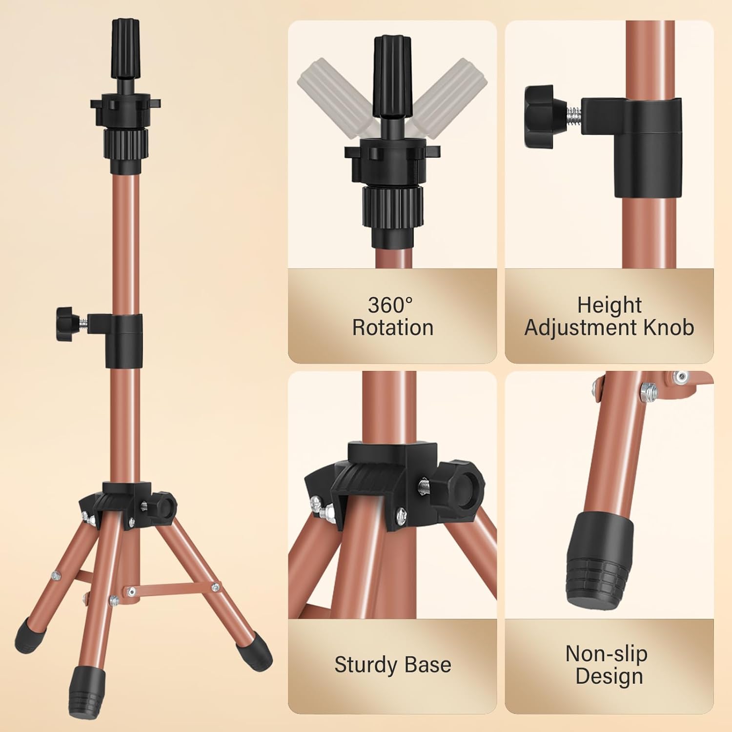 MINI Wig Stand Tripod, 25 Inch Adjustable Mannequin Head Stand, Wig Head Stand for Training Heads And Canvas Block Head (Latte, Mannequin Head Not Included)