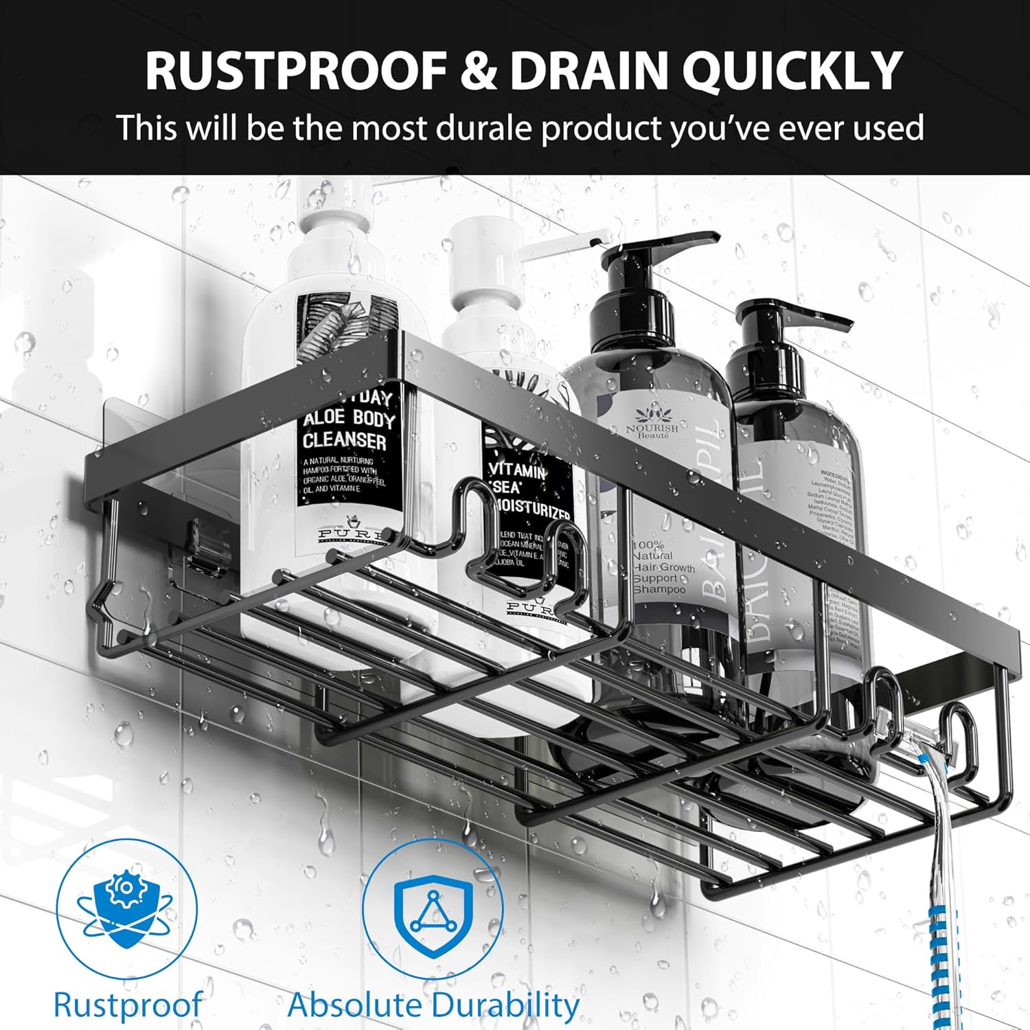 【Stronger Adhesive】The upgraded version of the transparent non-marking adhesive provides you with stronger stability. It can be installed without drilling. The load-bearing capacity can reach up to 40lb, which is twice that of other products on the market. Since it won’t fall from your wall, you don’t have to worry about the loss caused by the shower organizer falling after installation.