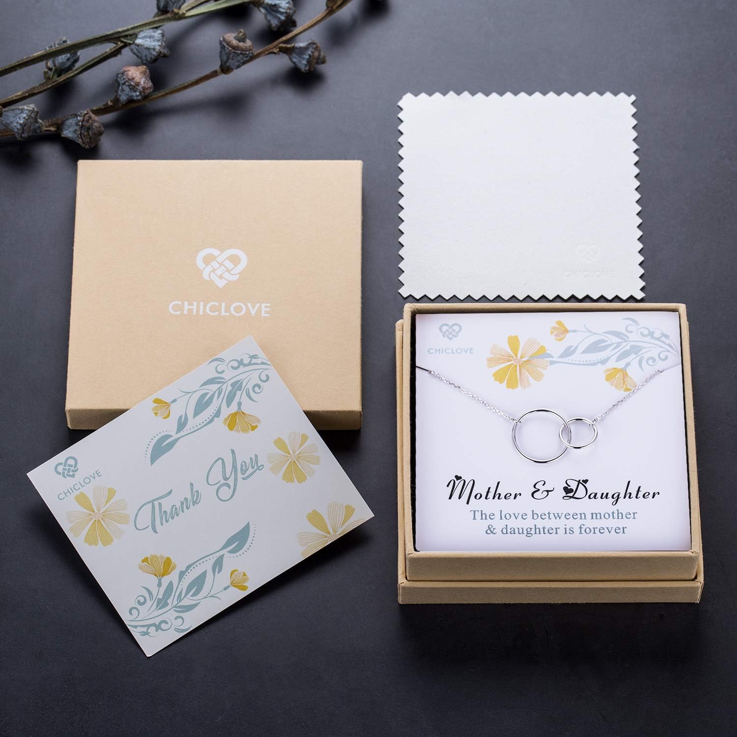 Mother Daughter Necklace – Mothers Day Jewelry Gift – Sterling Silver Two Interlocking Infinity Double Circles Pendant Necklace