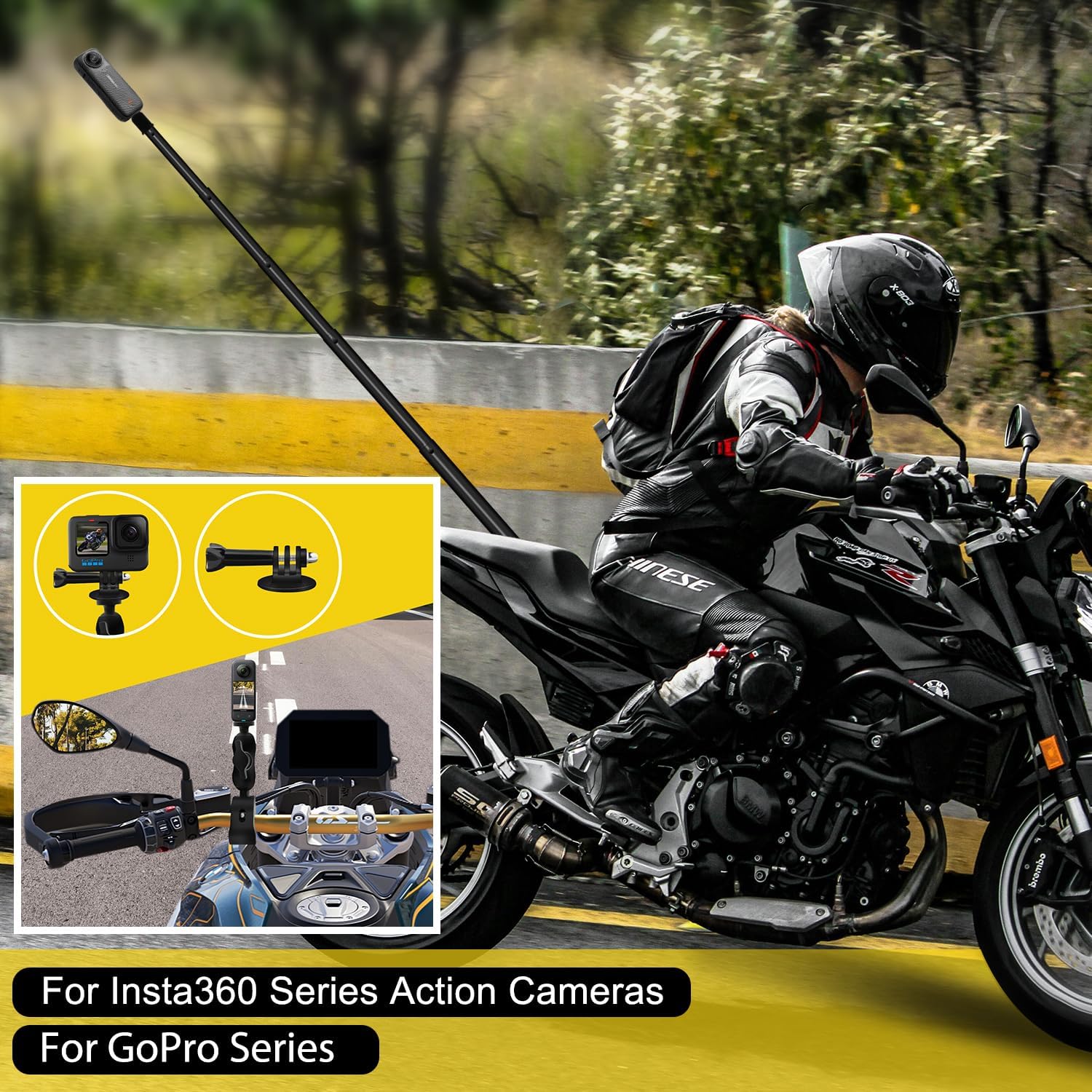 Bike Motorcycle Mount Kit Perfectly compatible with Insta360 X4 GO 3 X3 ONE X2 RS R camera shooting